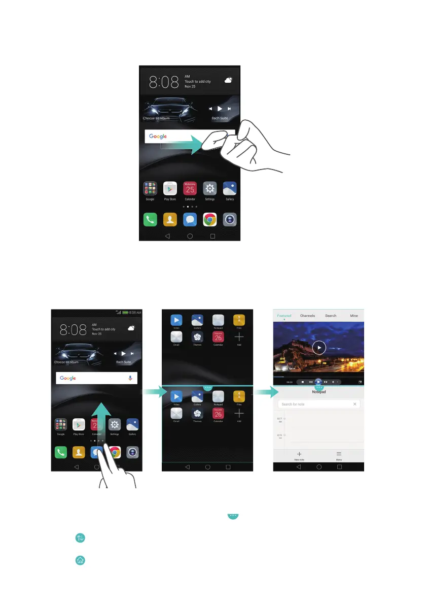 In dual windows view, the screen is divided into two windows. One app can be opened
