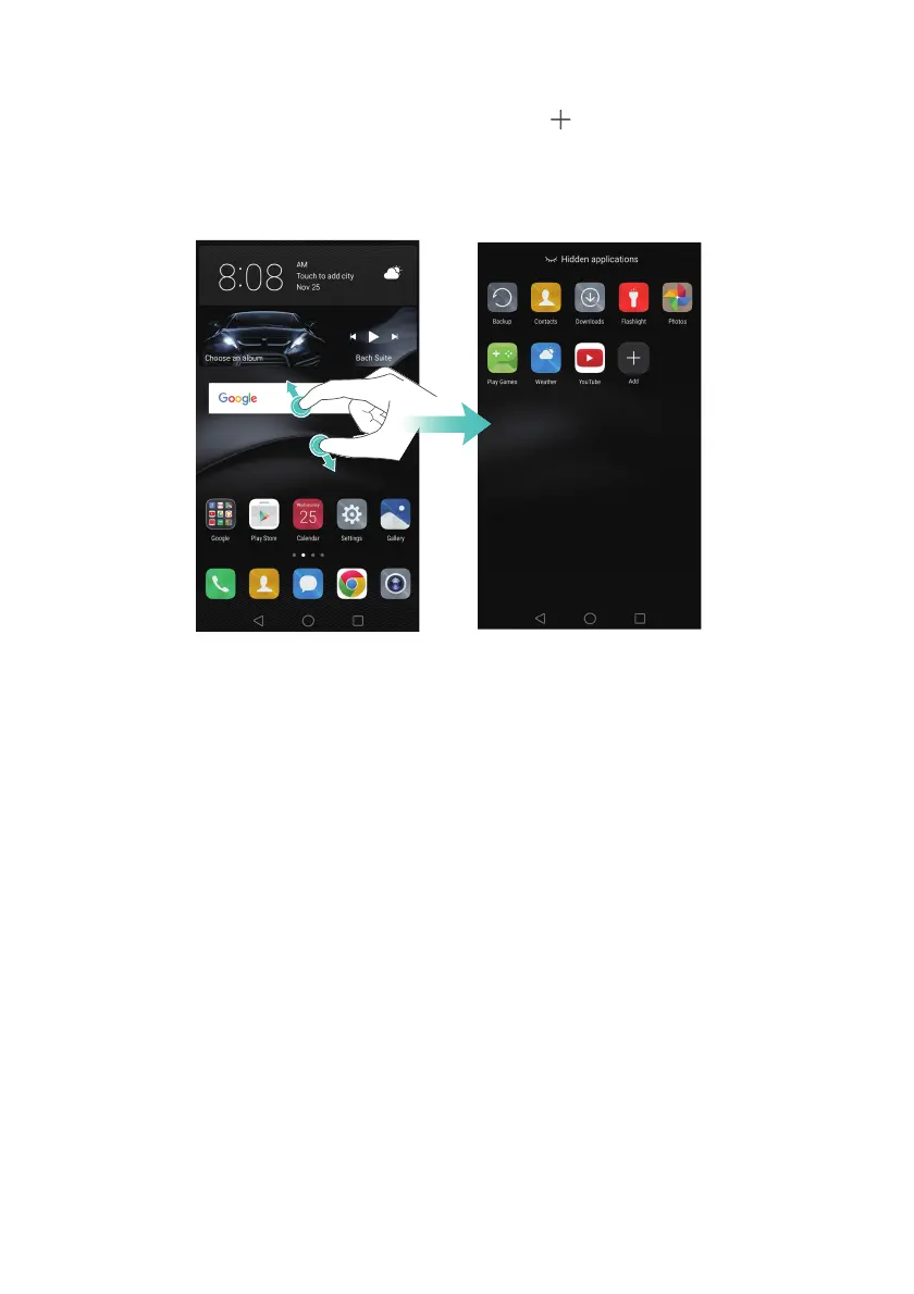 On the home screen, spread two fingers apart. Touch , select the apps you want to