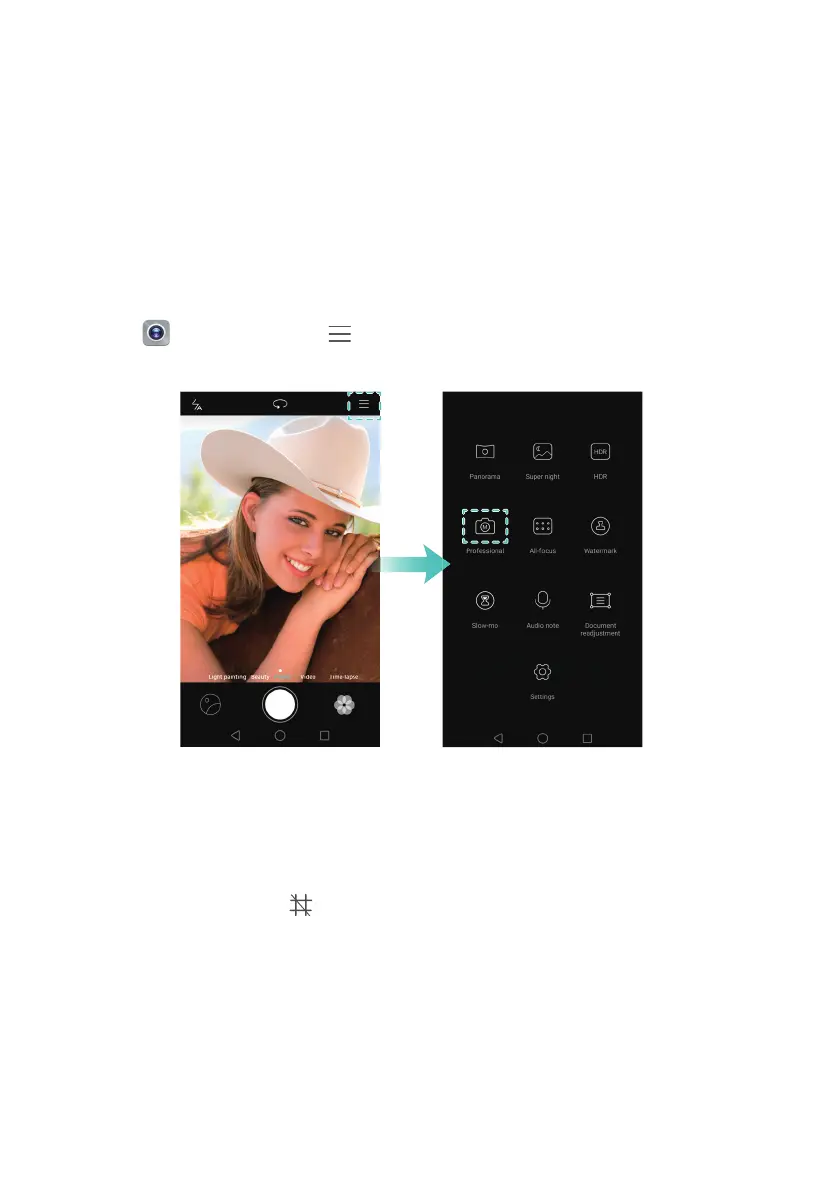 On the Pro camera settings screen, you can enable grid lines, or configure parameters