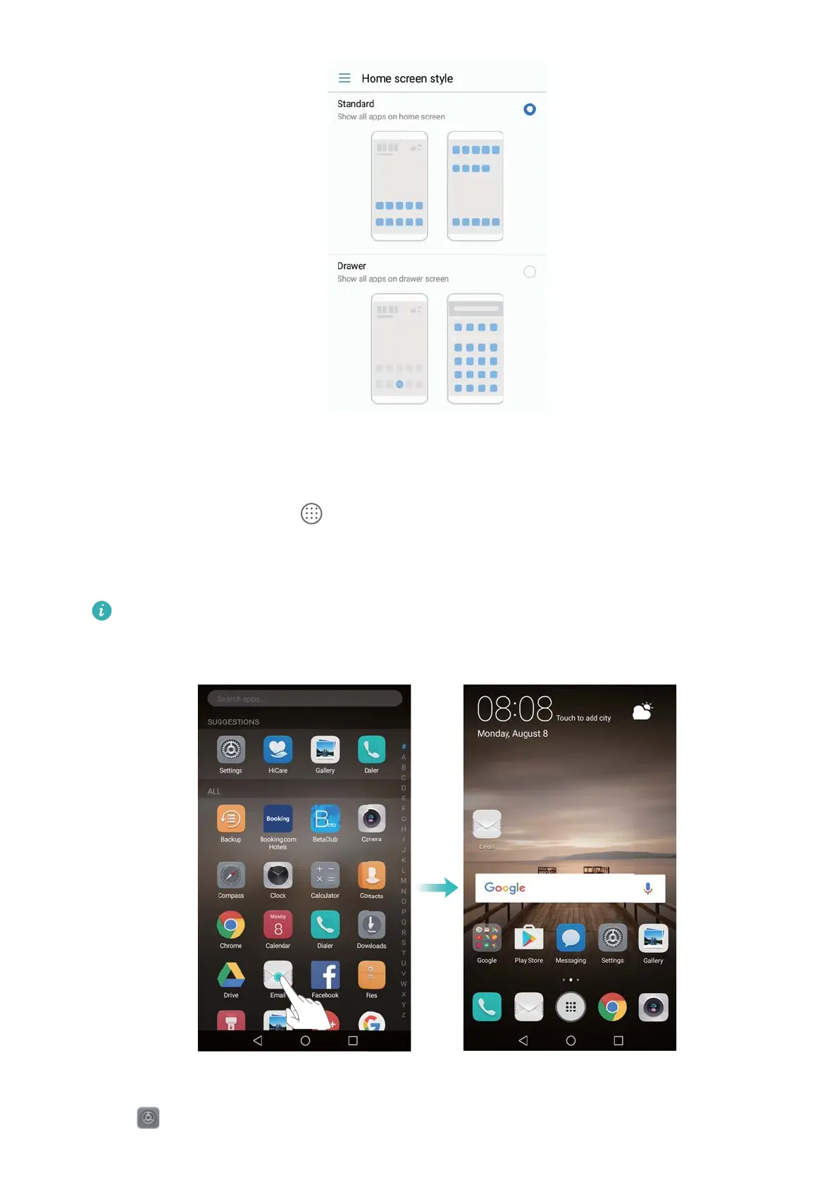 1 On the home screen, touch to view the list of apps.