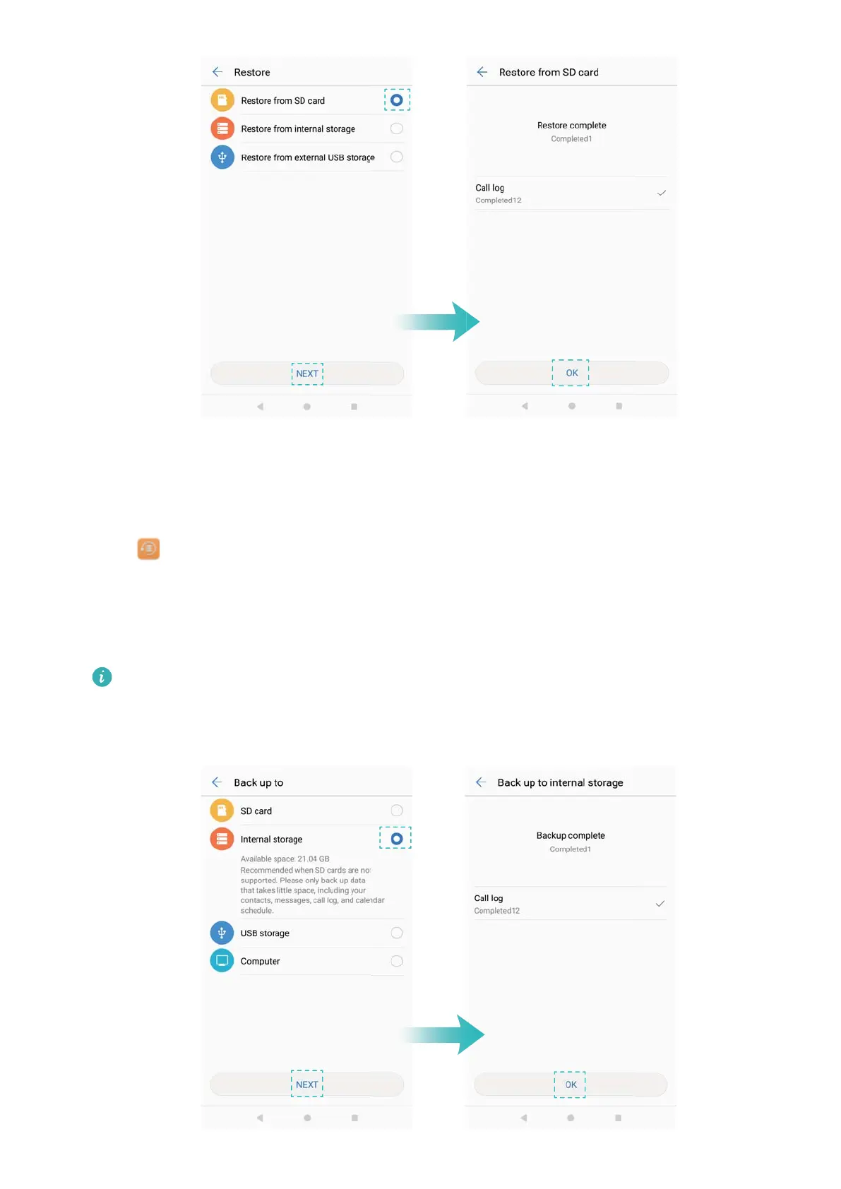 Backing up data to your phone's internal storage