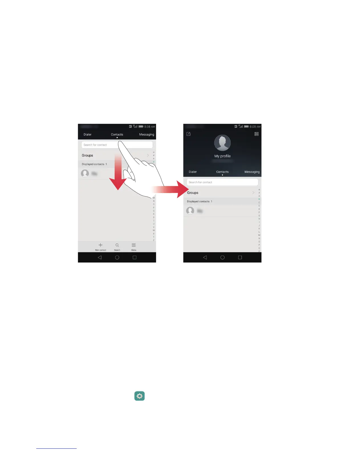 From the dialler, contacts or messaging screen, drag down and then release to display