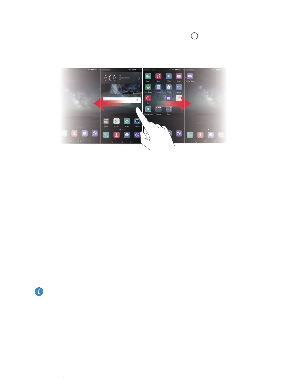 Swipe left or right to view all home screens.