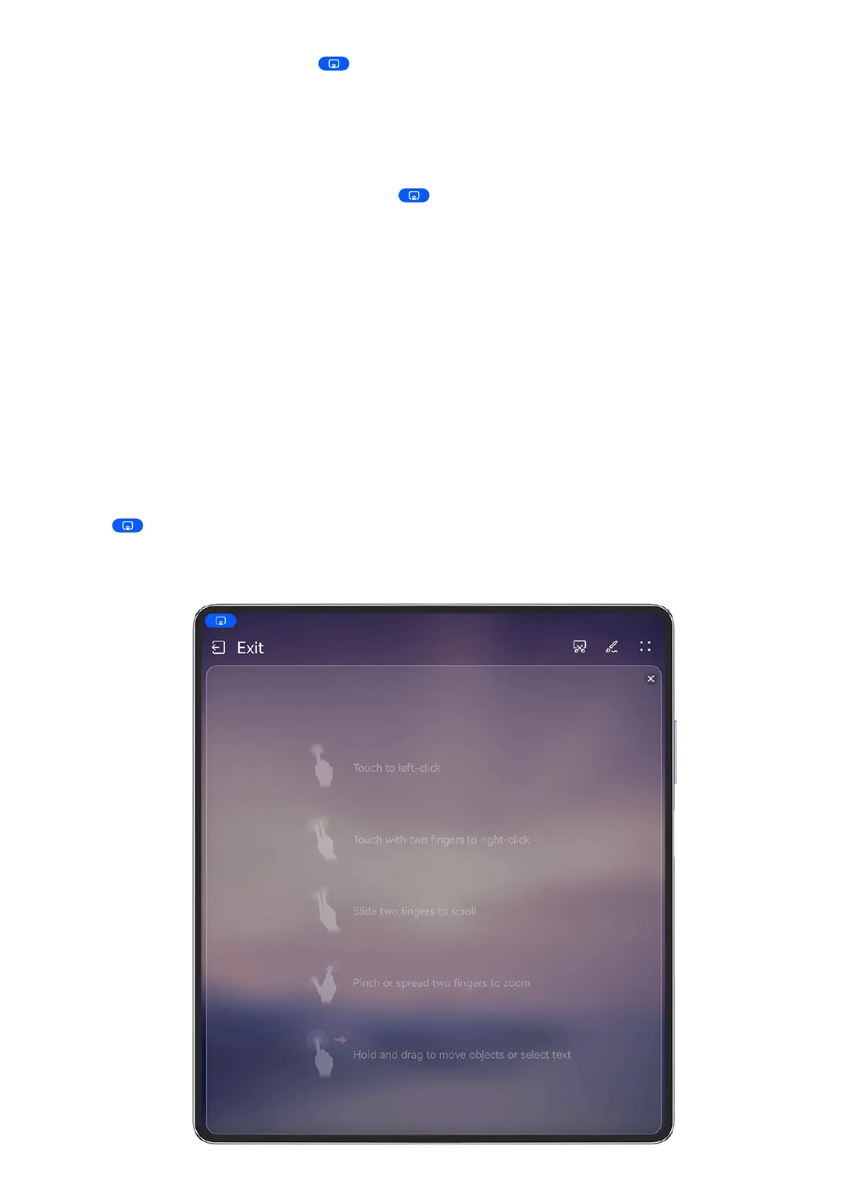 • Use gestures as instructed to simulate mouse commands.