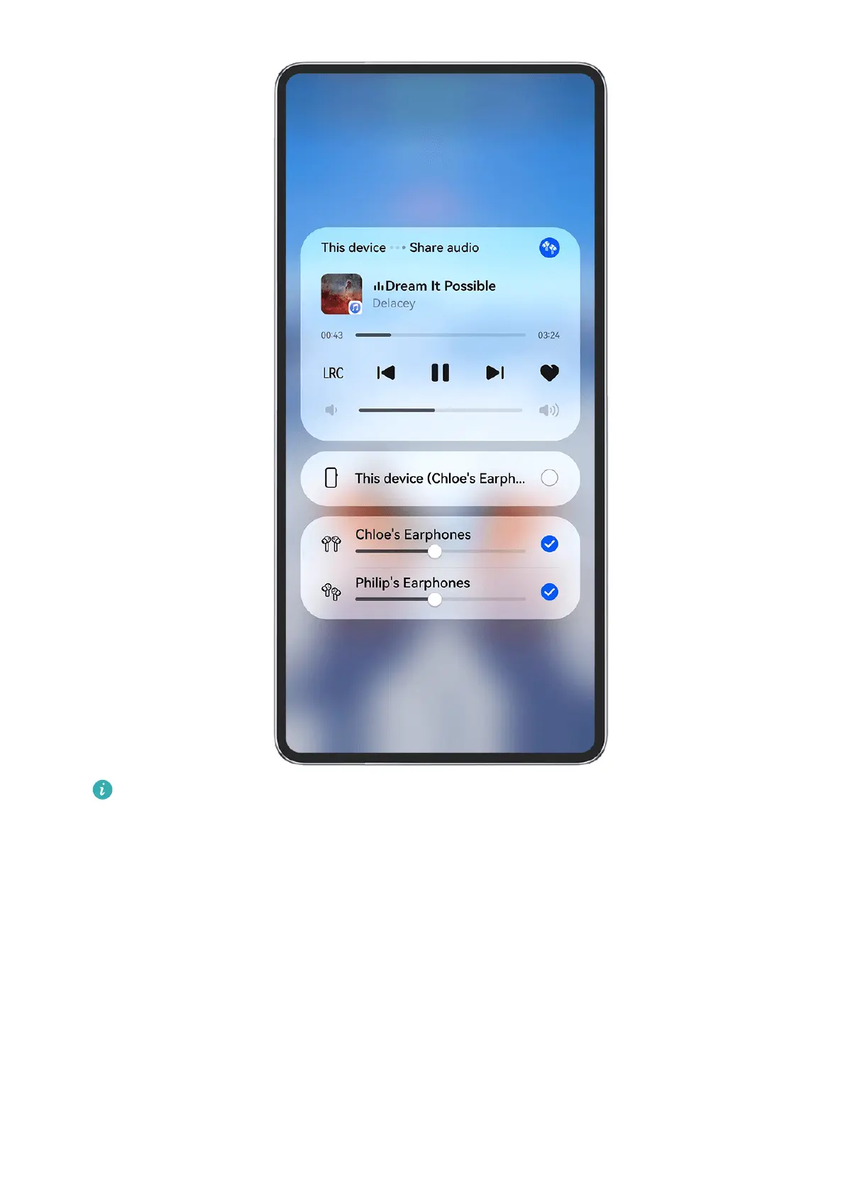 audio under the name of the earphones, and initiate sharing as follows:
