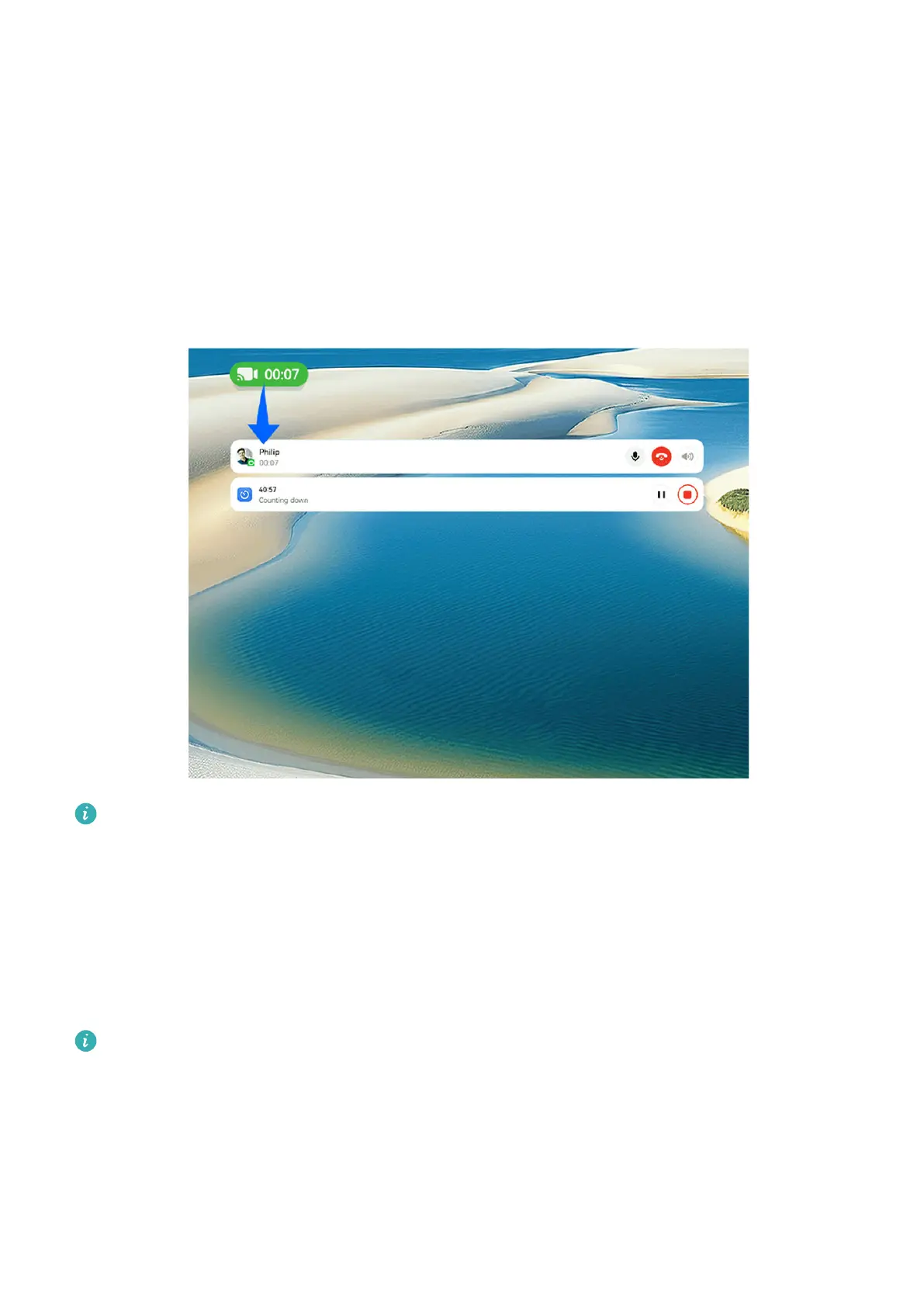 view real-time information about tasks such as a timer, during a call.