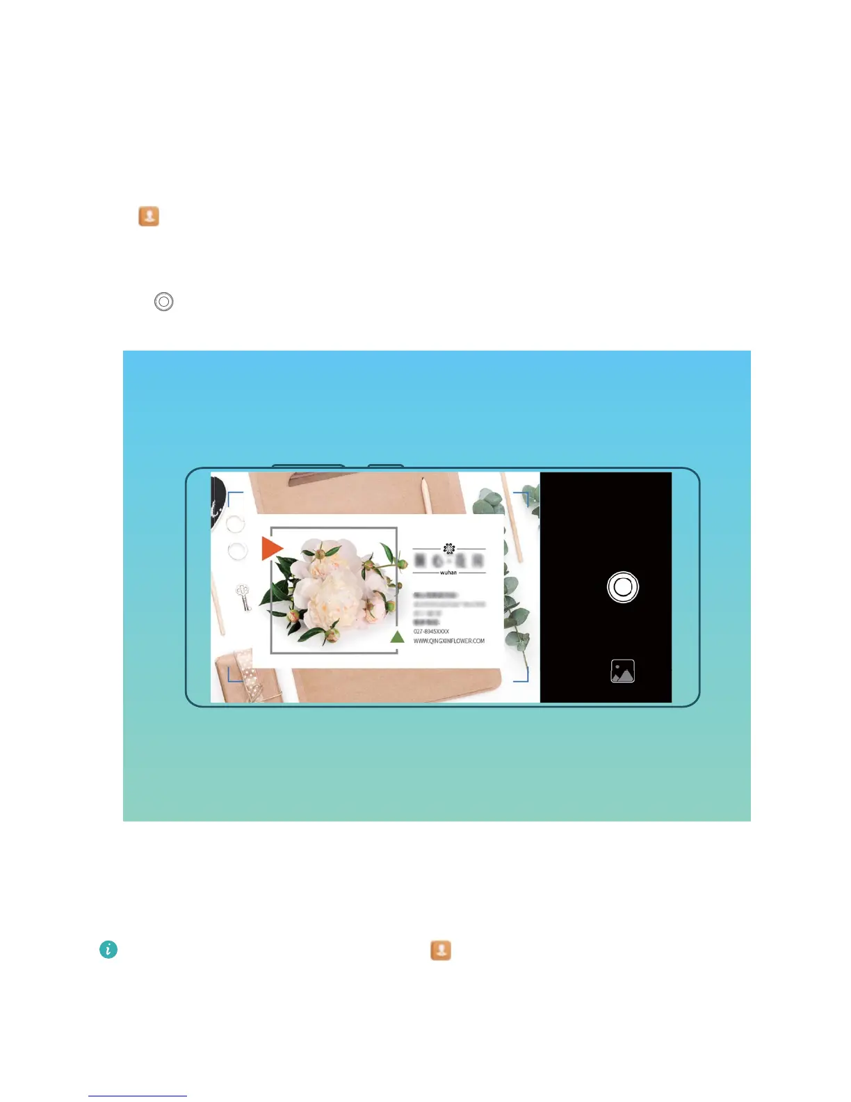 l Scan a single business card: Place the business card on a at surface and adjust the camera's