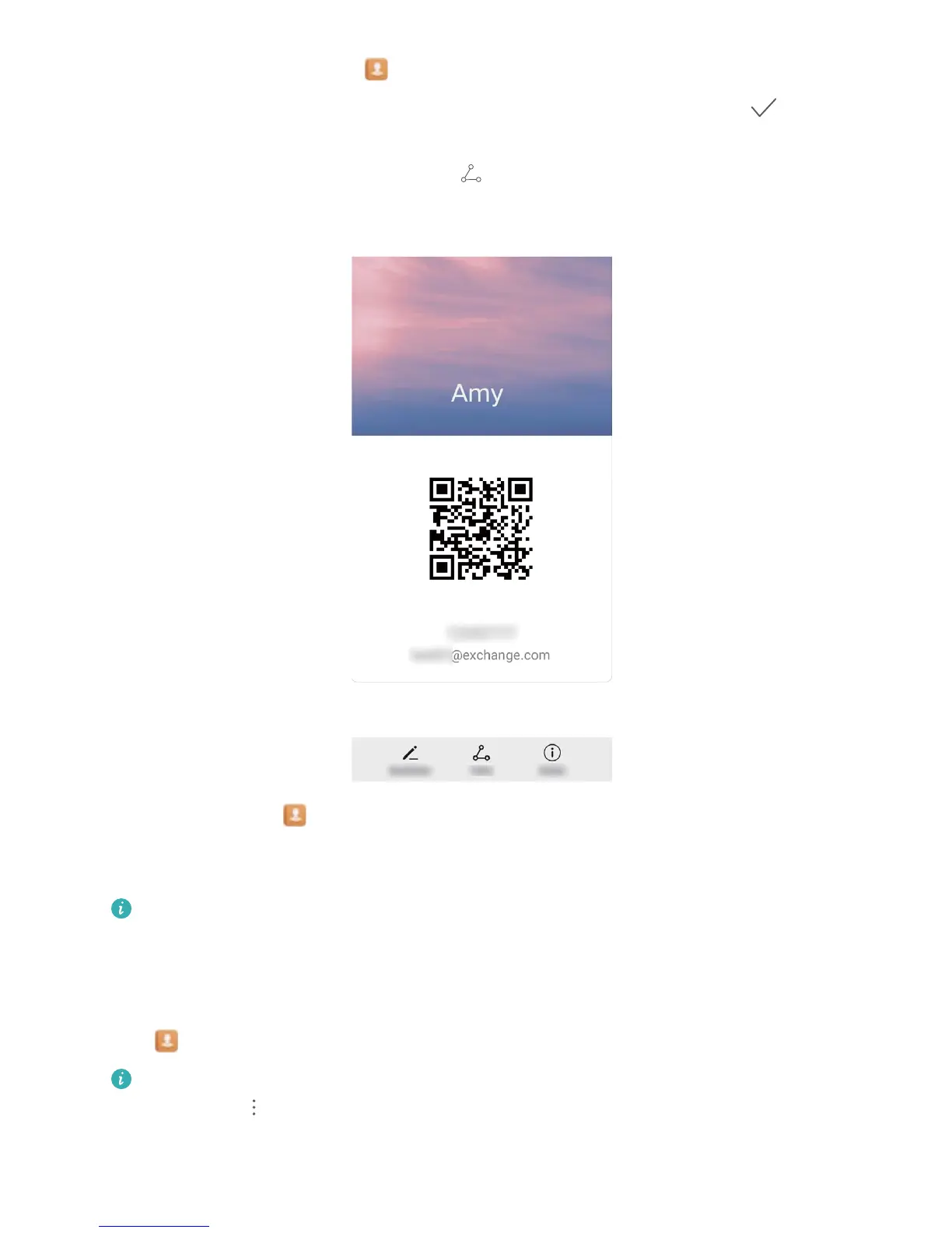 icon in the upper right corner to share the contact using the QR code. You can also touch Share,