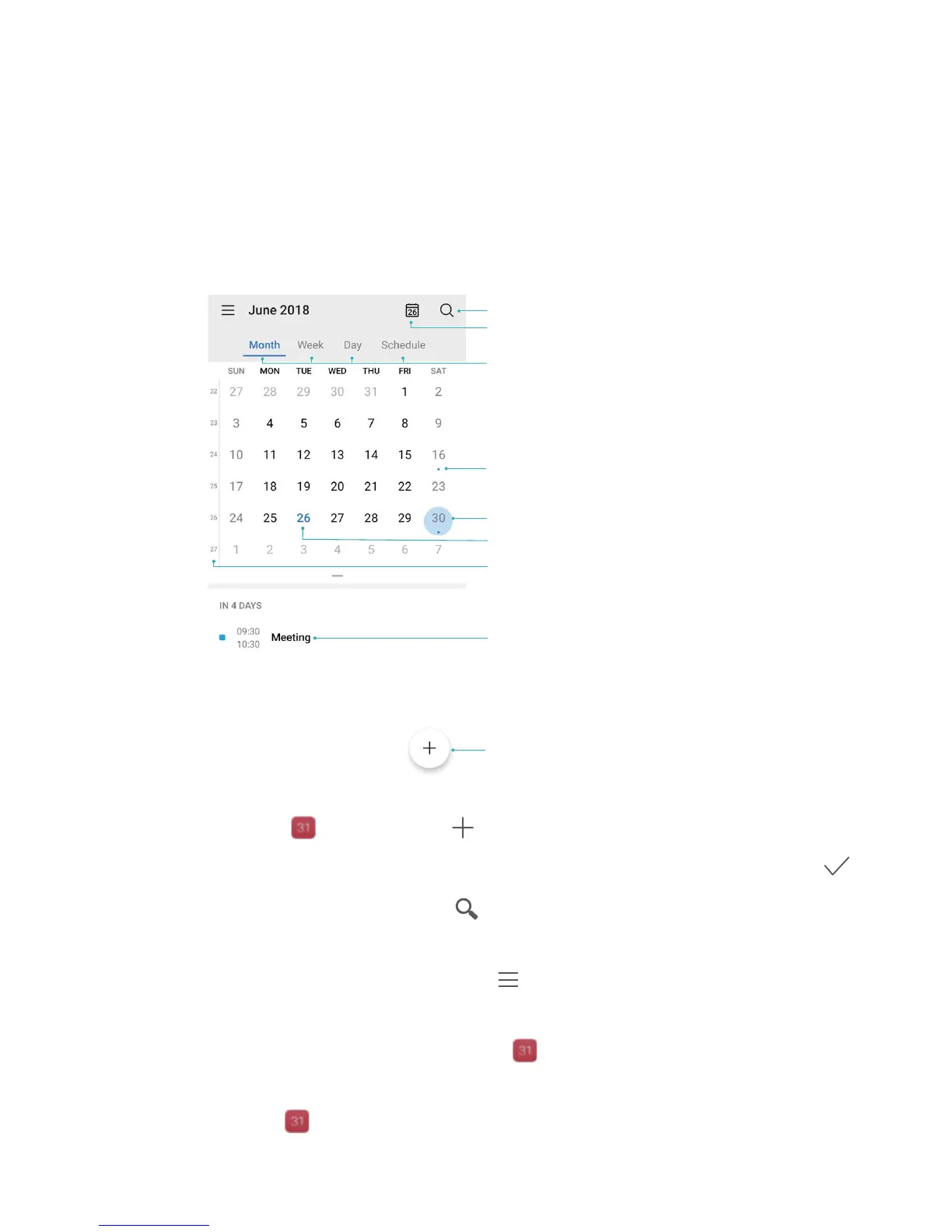 Create an event: Open Calendar, touch , and enter your event information including title,