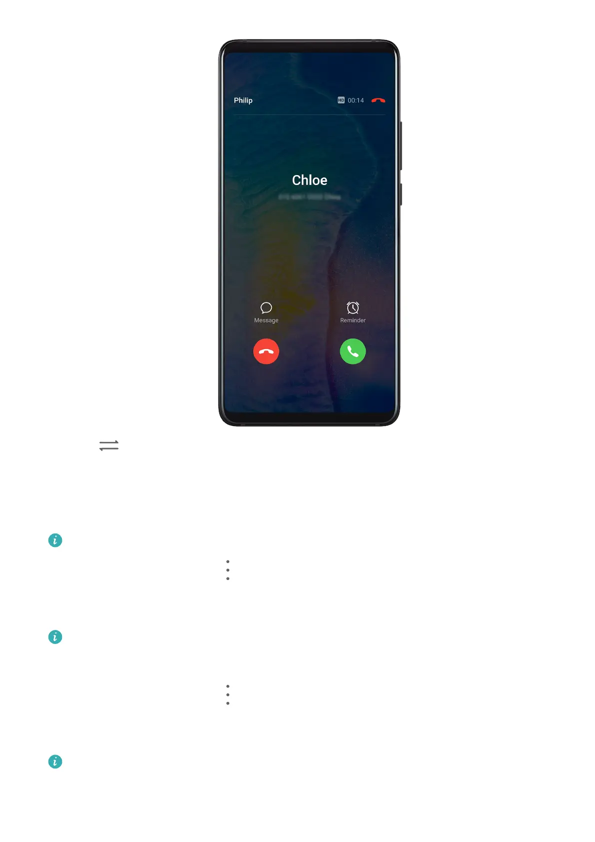 2 Touch , or touch a held call in the call list to switch between the two calls.