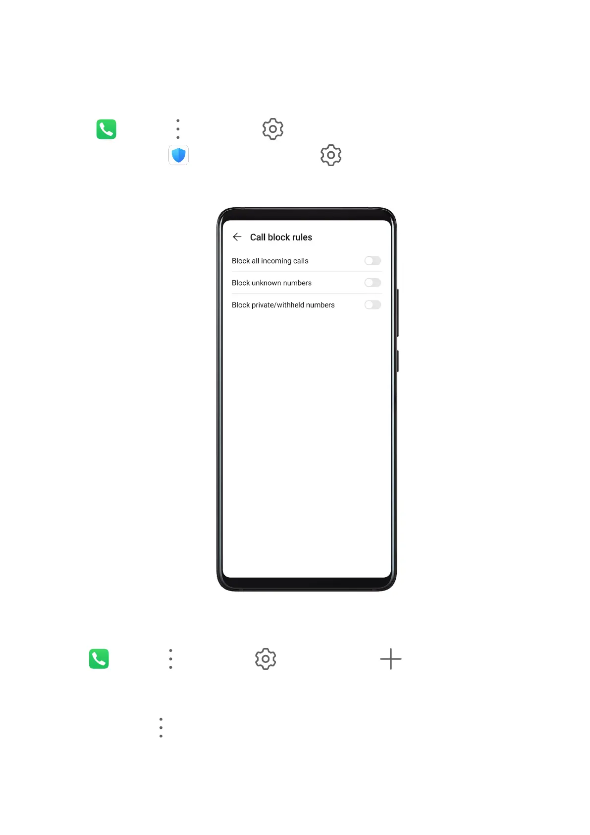 • Go to Phone > > Blocked > > Blocklist, touch , then add the phone