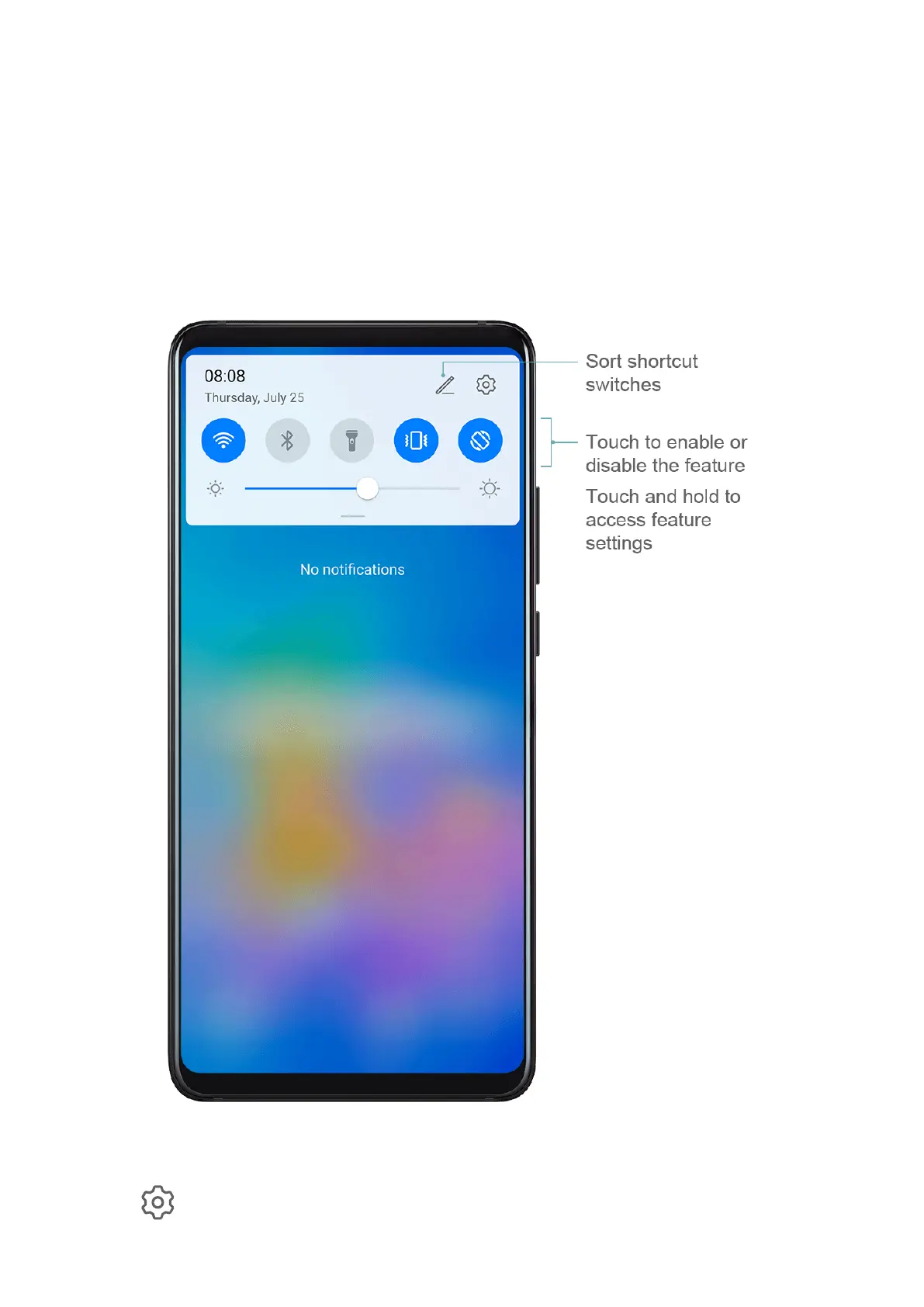 • Touch and hold a shortcut switch to enter the settings screen for that feature.