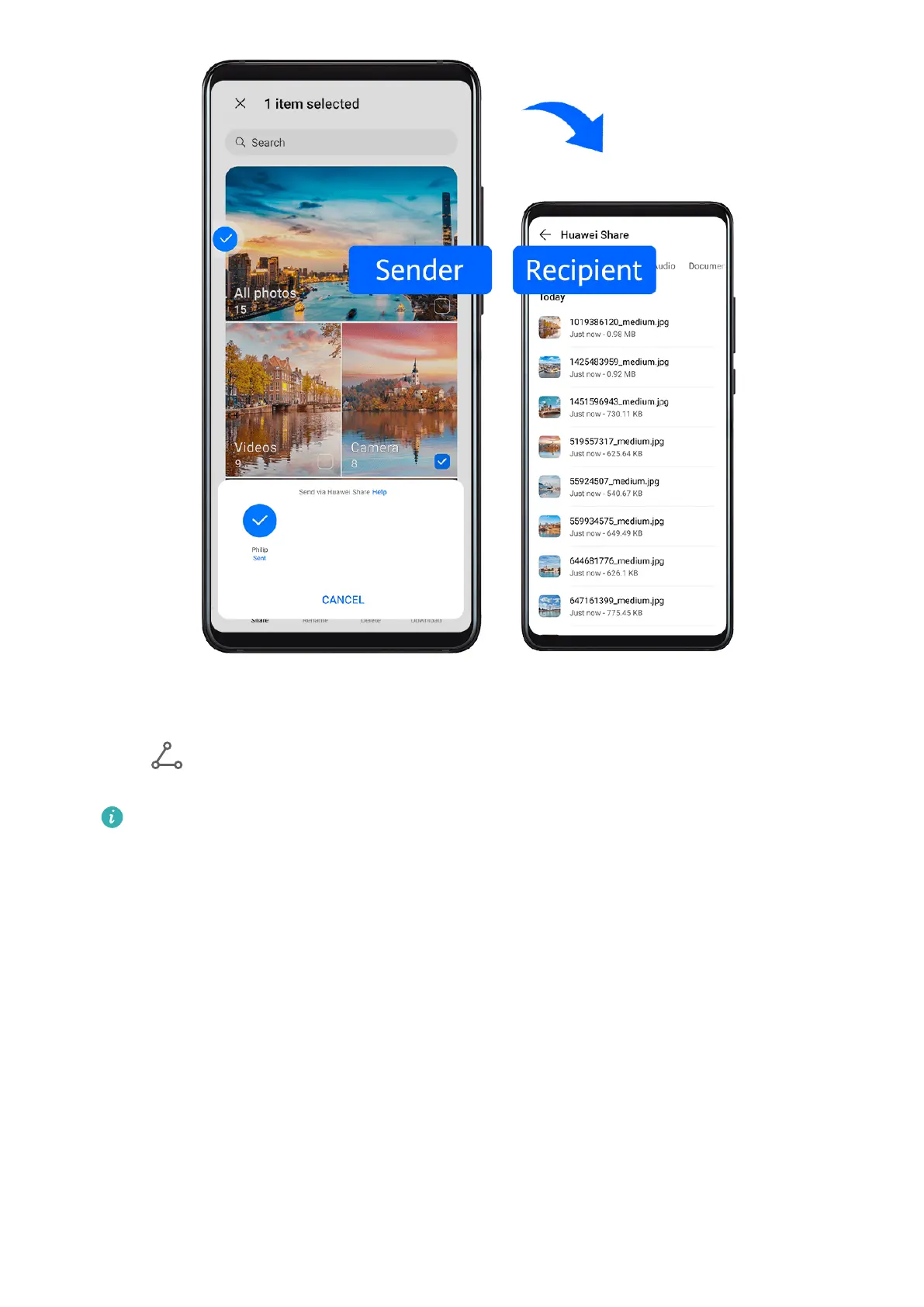 You can use Huawei Share to easily share les wirelessly between your device and a