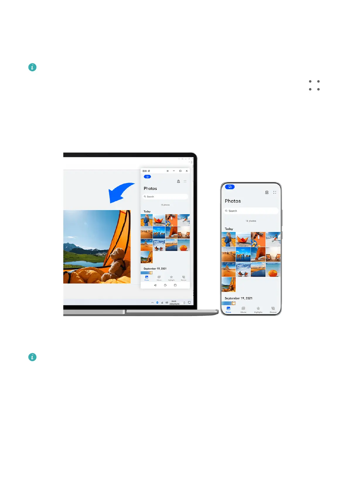 After Multi-Screen Collaboration is established between your phone and laptop, you can drag