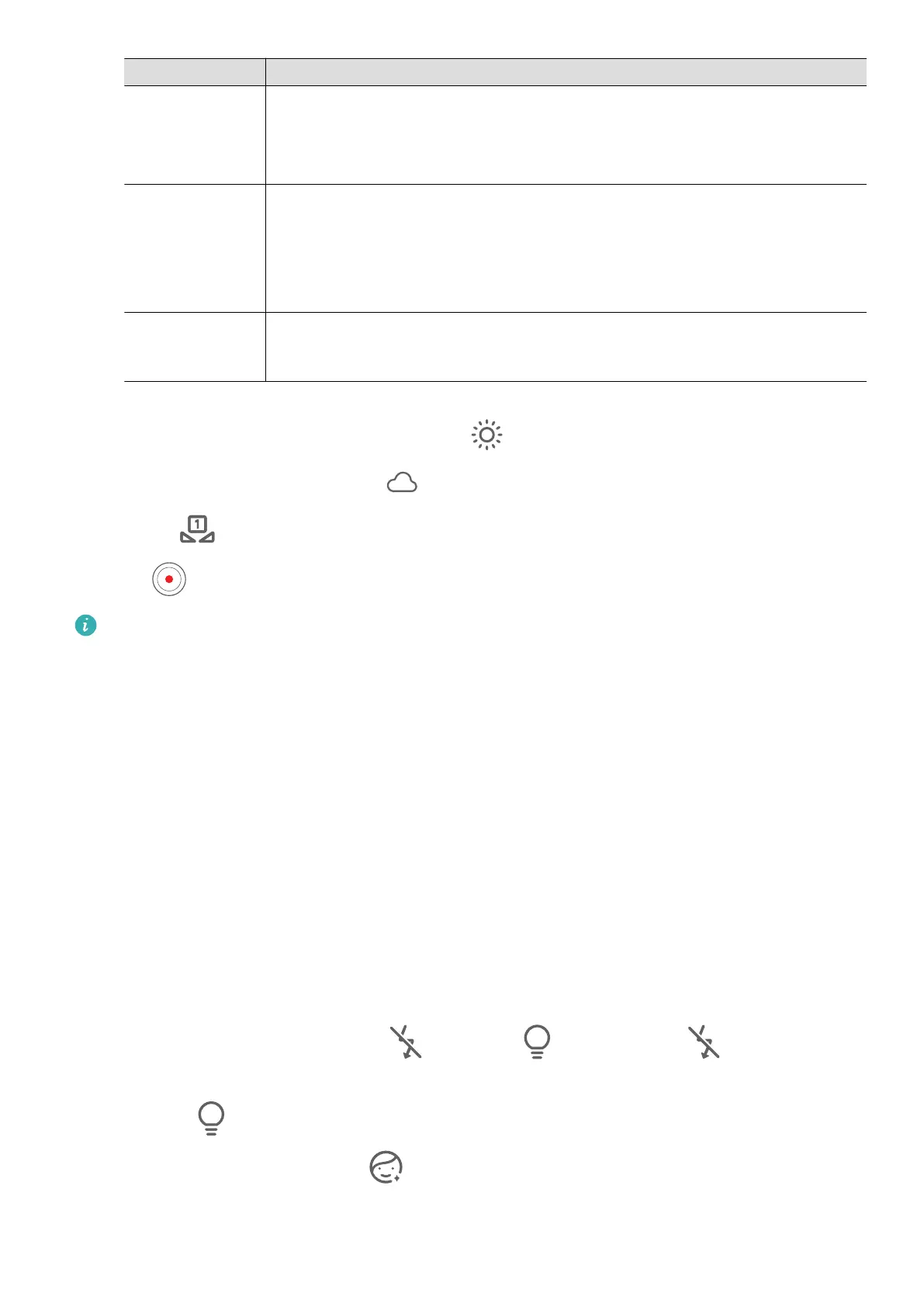 • Turn the ash on or o: Touch and select (steady on) or (o).
