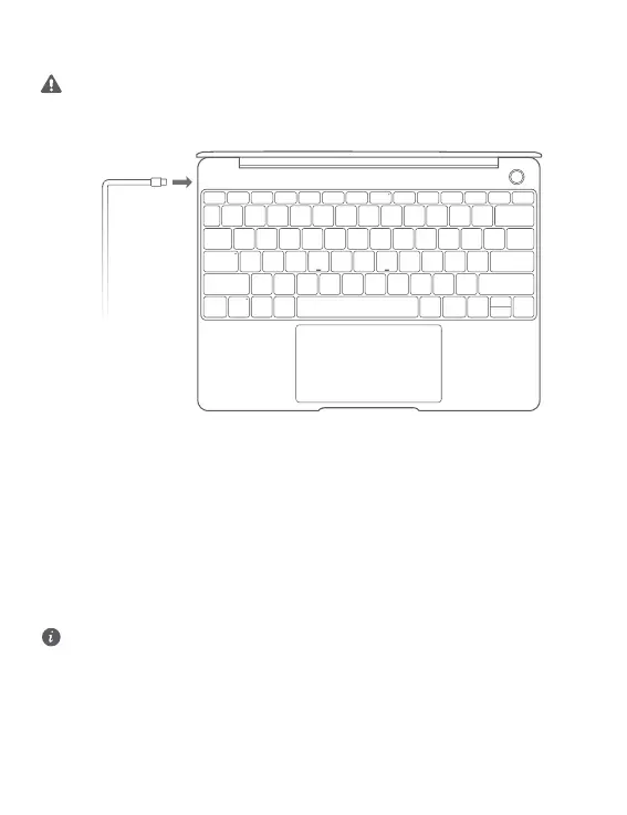 l Când porniți MateBook 13 pentru prima dată, conectați-l la adaptorul de alimentare și așteptați