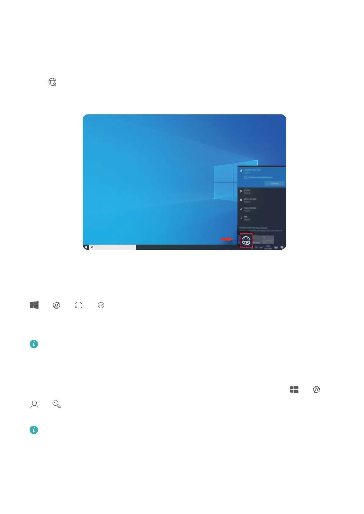 Click in the lower right corner of the desktop. Select a Wi-Fi network and follow the