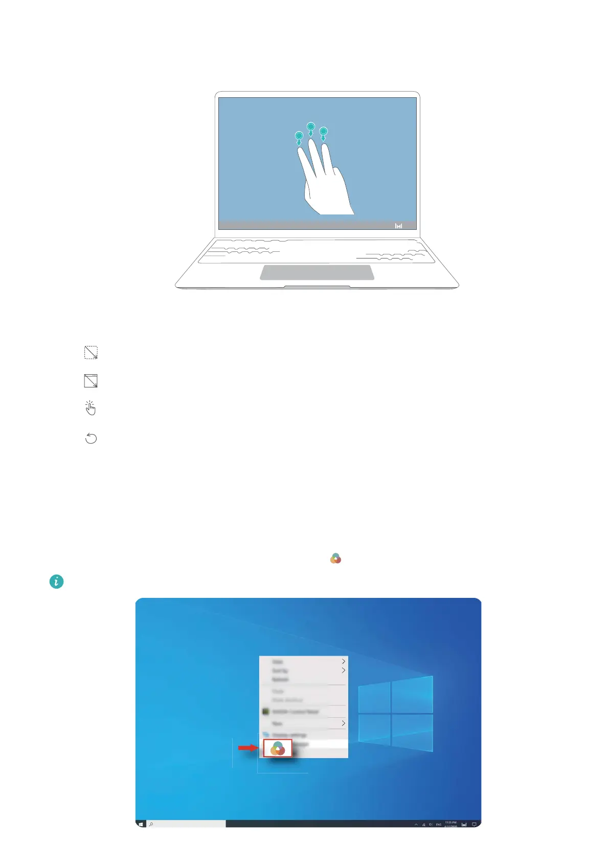 2 Use any of the gestures below to take a screenshot. If the gesture is not recognised, a