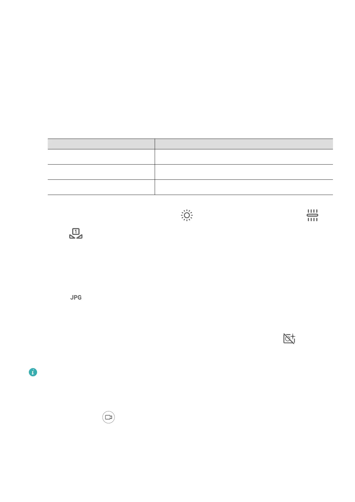 • Select the storage format: You can save the photo in JPG or RAW format. RAW format