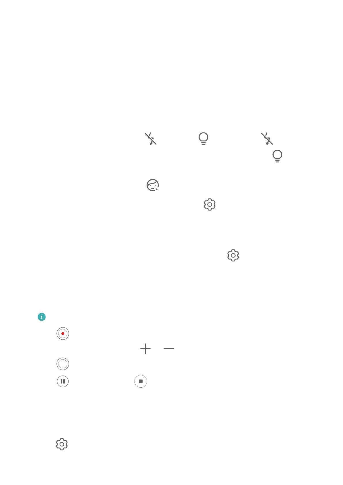 • Turn the ash on or o: Touch , then select (Always on) or (O).
