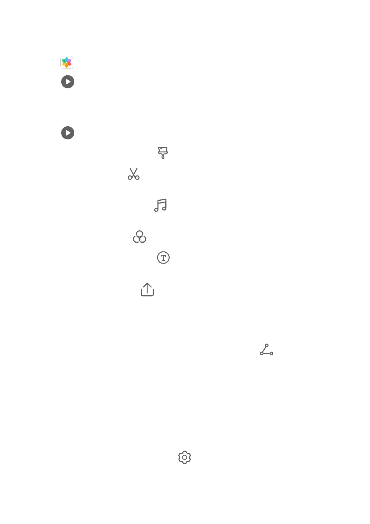 • Add lter eects: Touch to select a lter. Drag the slider to adjust the lter eect.