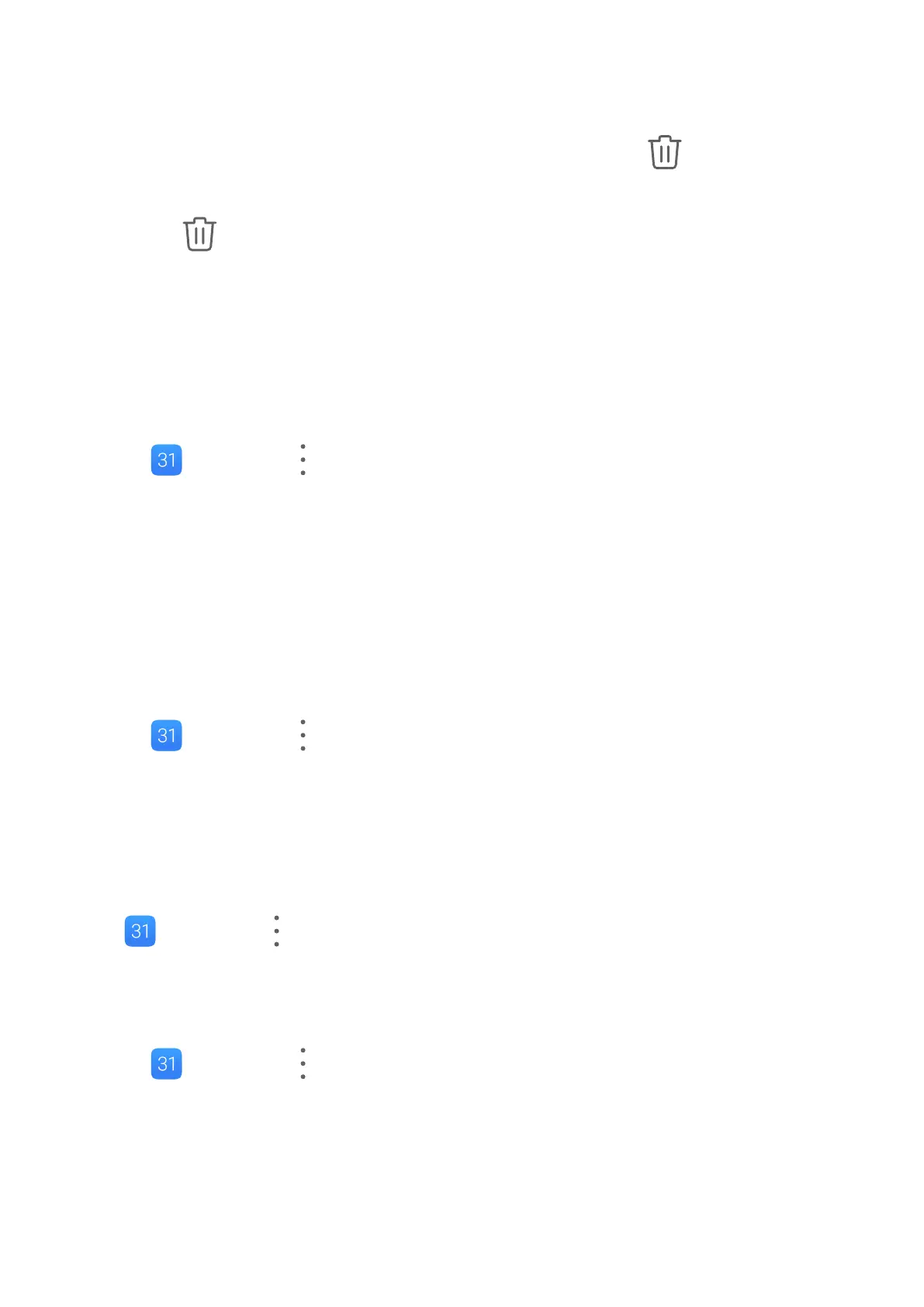 • On the Calendar screen, touch the event to be deleted and touch .