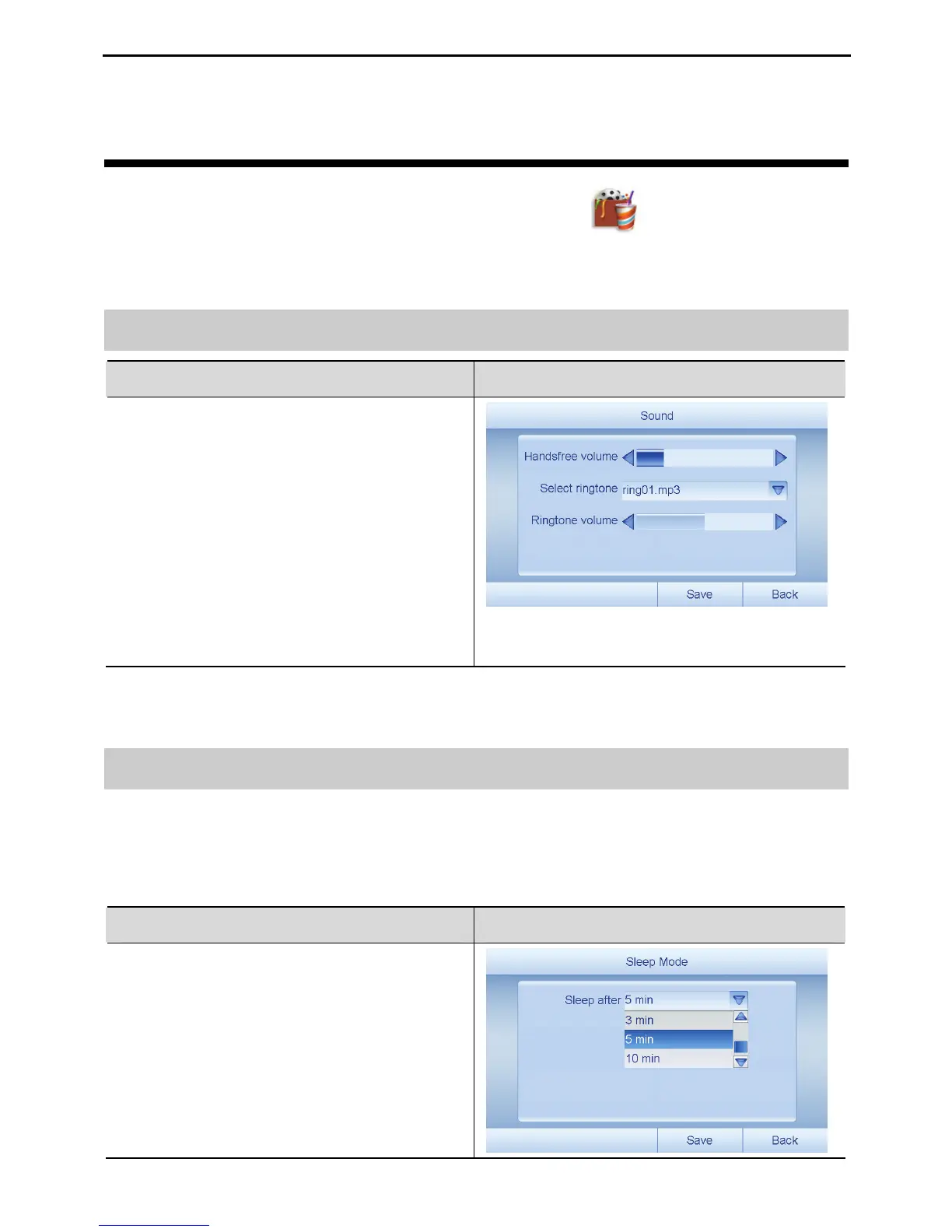 On the Sleep Mode screen, you can set the duration of the backlight. If no operation is