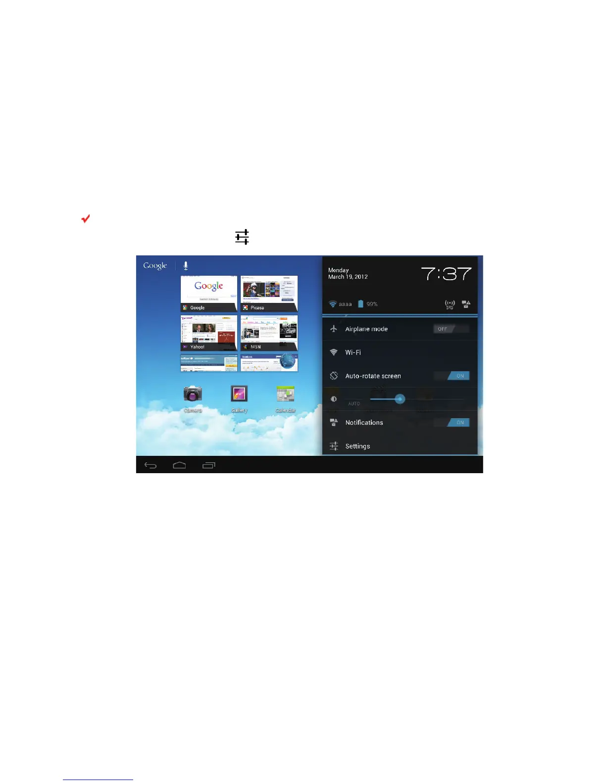 On the Home screen, touch the digital clock in the lower right corner. In the