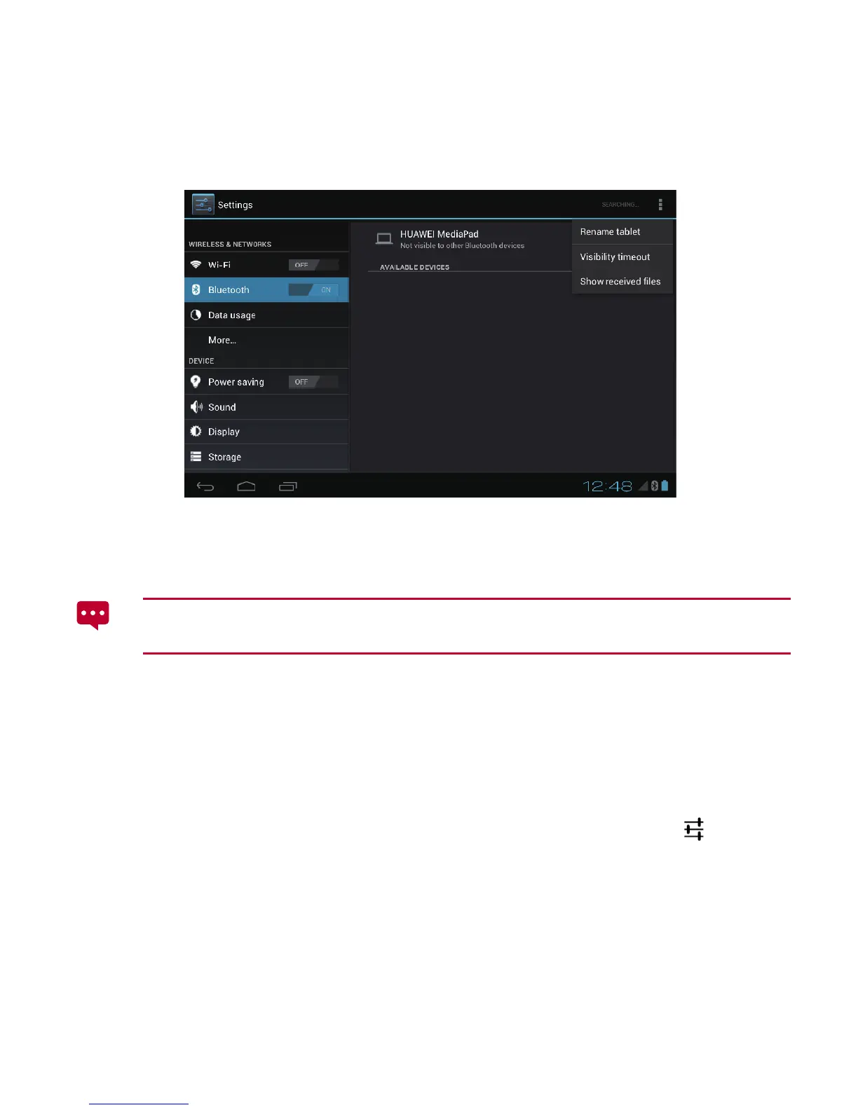 1. On the HUAWEI MediaPad, turn on the Bluetooth function. The HUAWEI