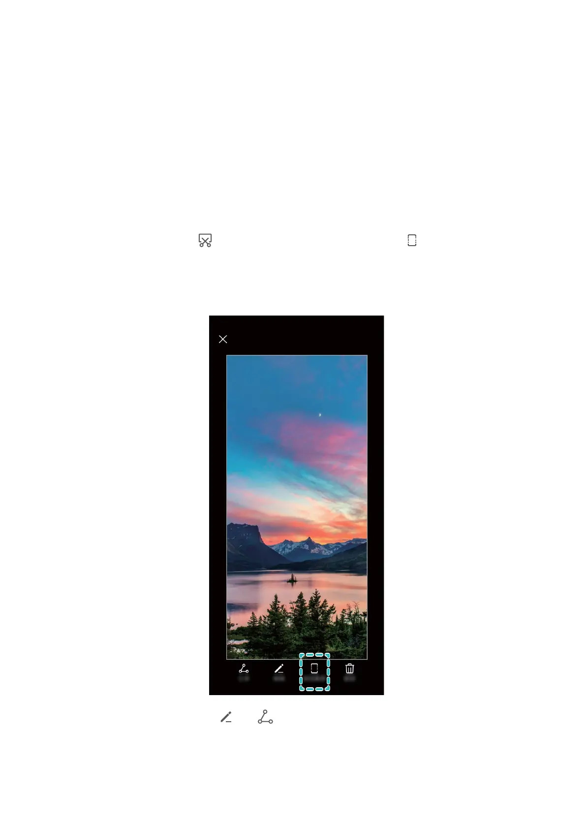 After taking the screenshot, touch or to edit or share the screenshot. The screenshot will be