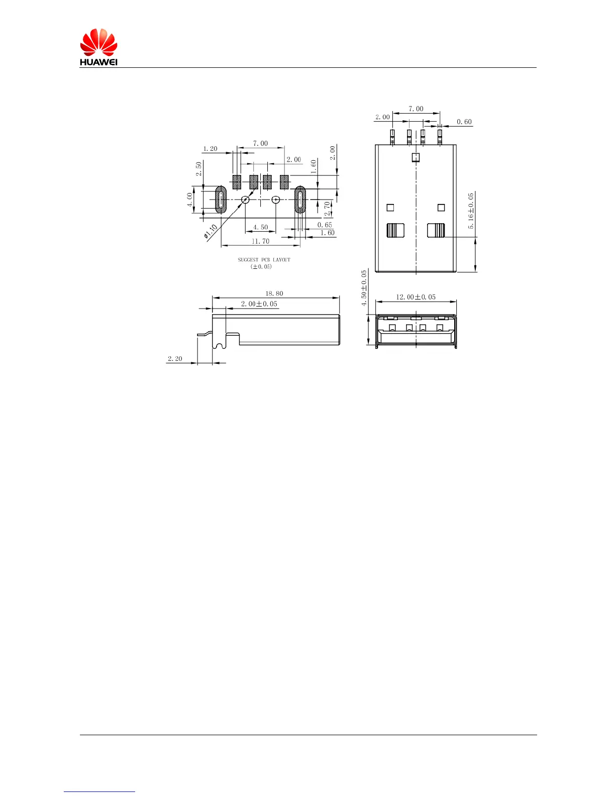 Figure 6-3 Dimensions of the USB connector