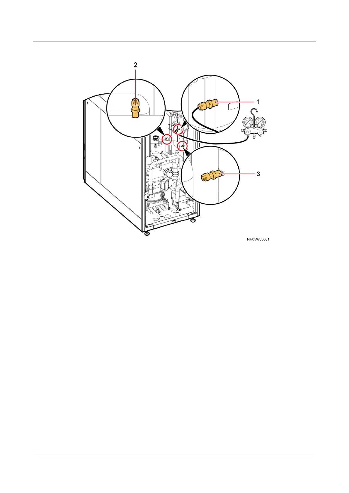 Step 4 Exhaust nitrogen from liquid pipe low-pressure needle valve by following Step 1 to Step 3.
