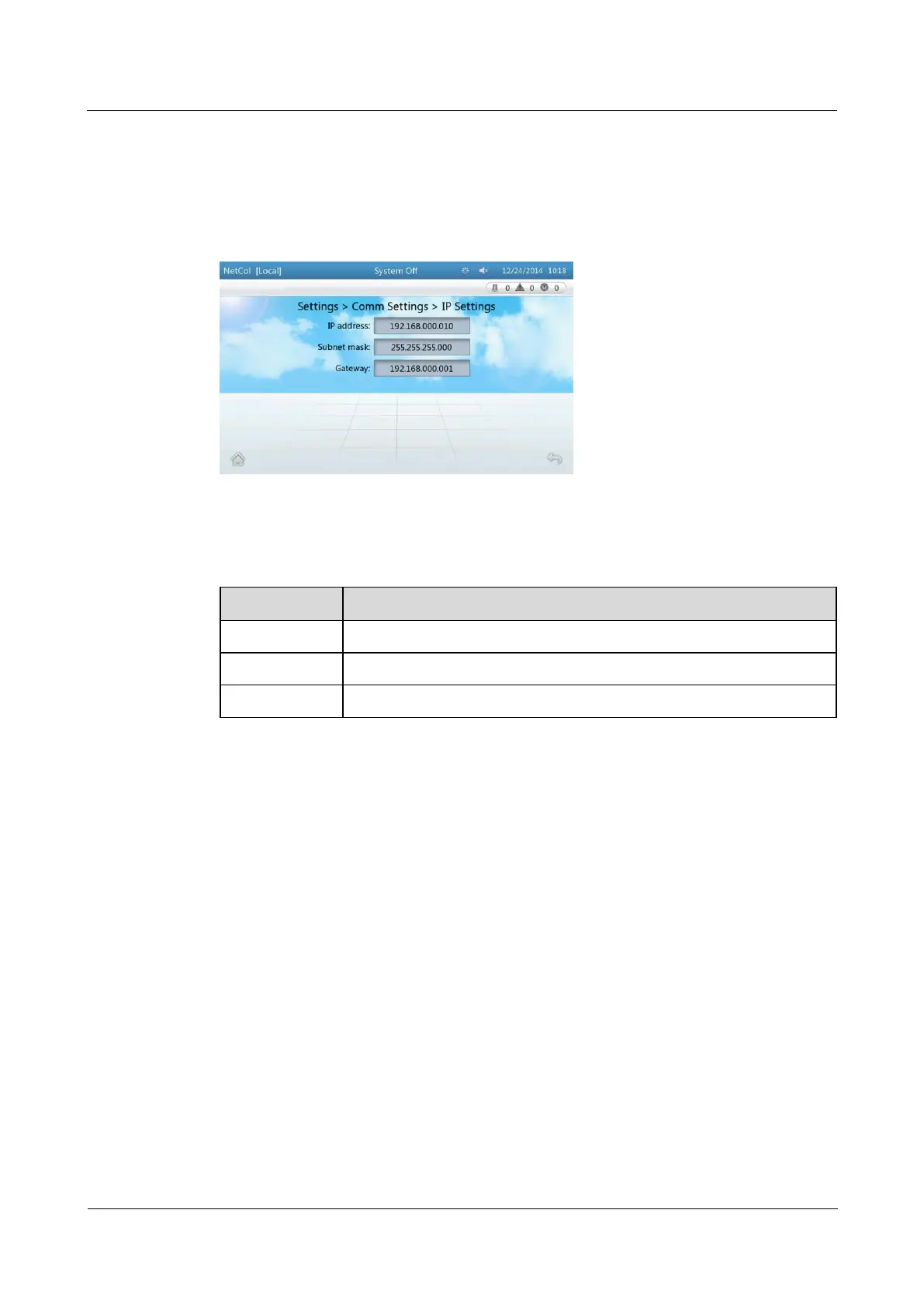 Table 4-3 IP address settings