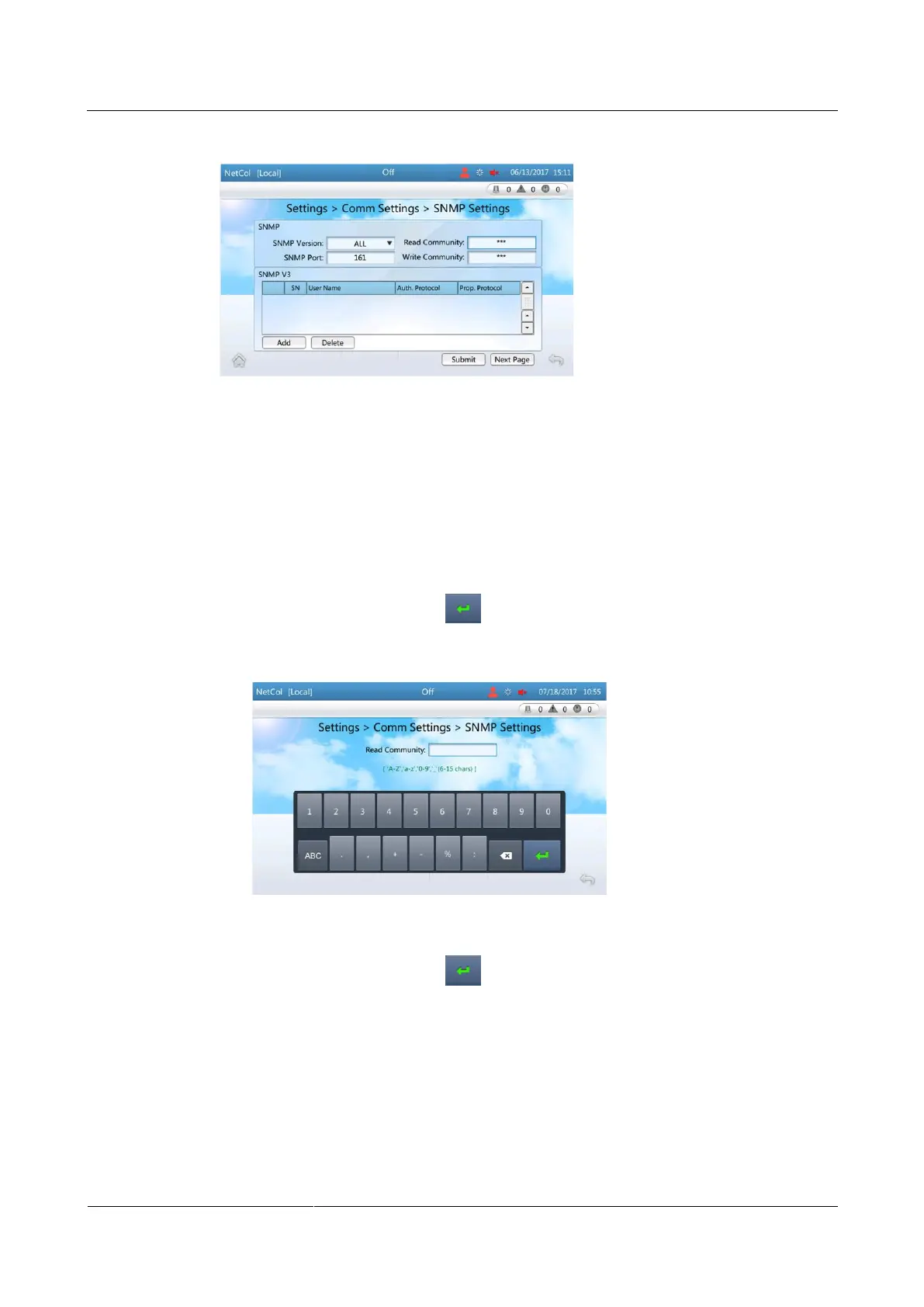 Step 2 Set SNMP Version based on site requirements, and then tap Submit.