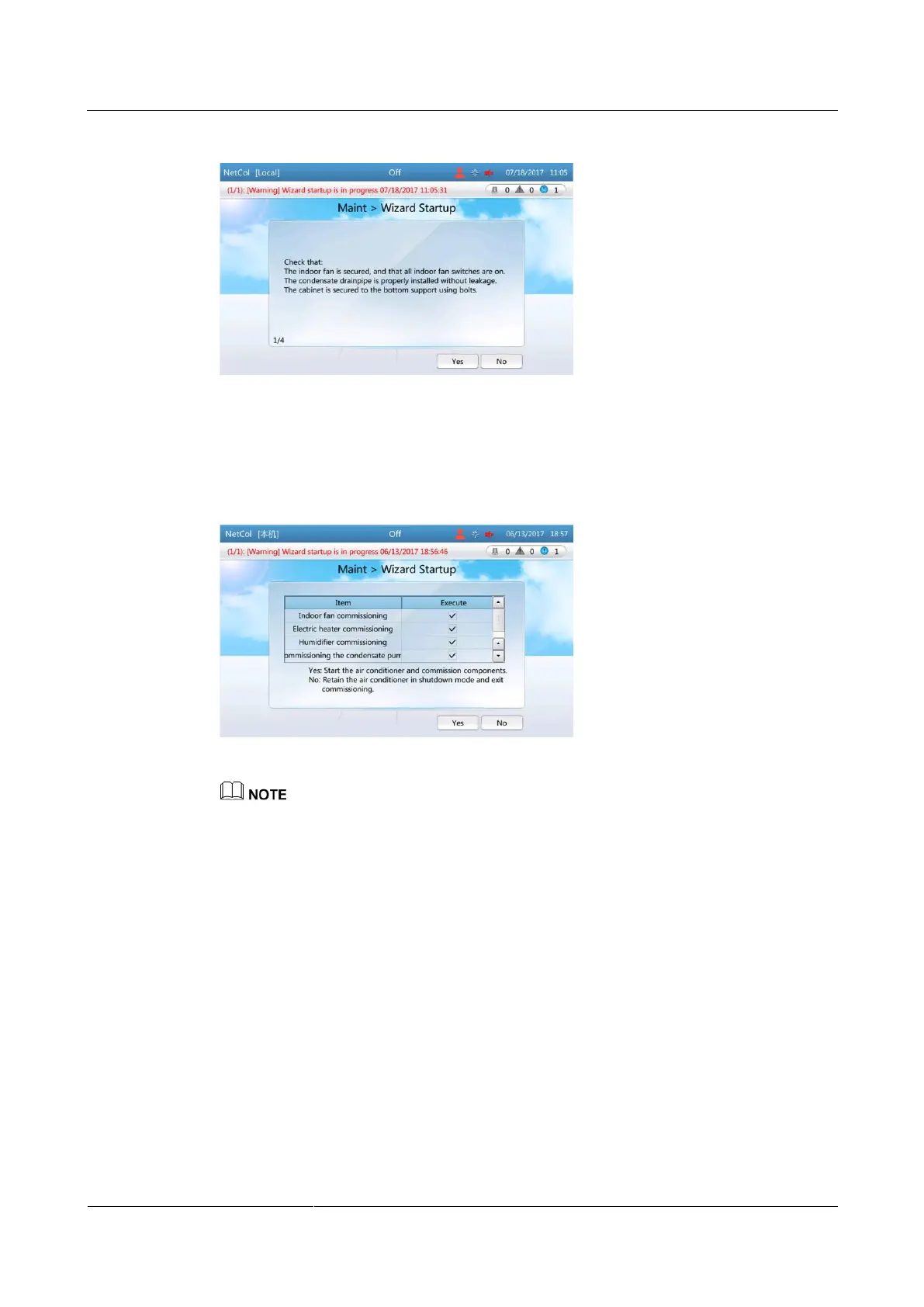 and humidifier commissioning items will not appear on the screen.