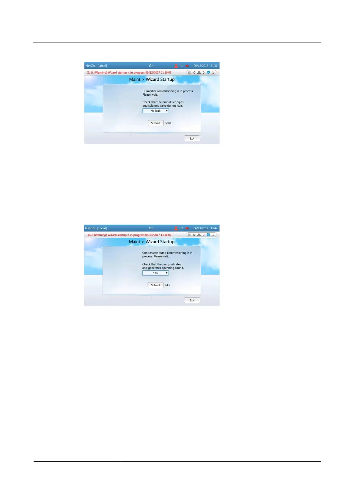 Figure 4-37 Humidifier commissioning