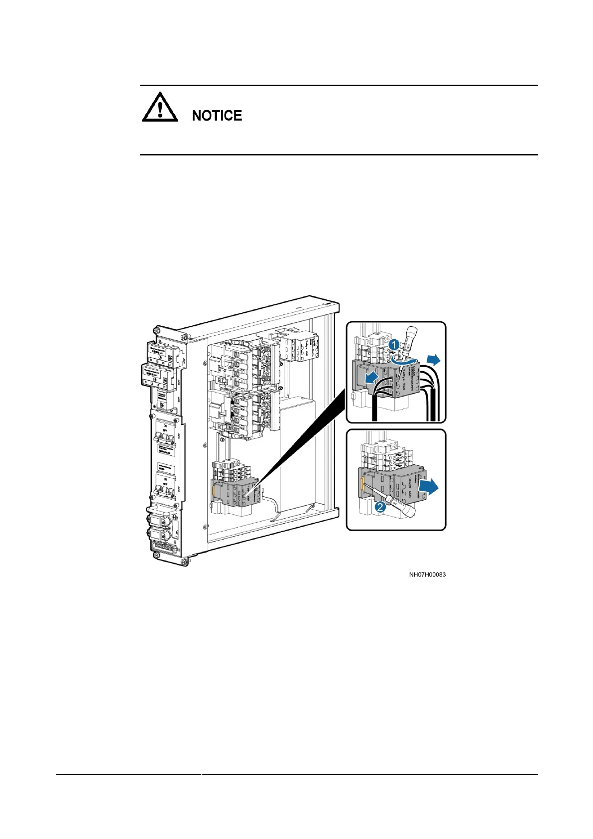 Step 5 Remove cables from the faulty contactor. Open the contactor buckle and remove the faulty