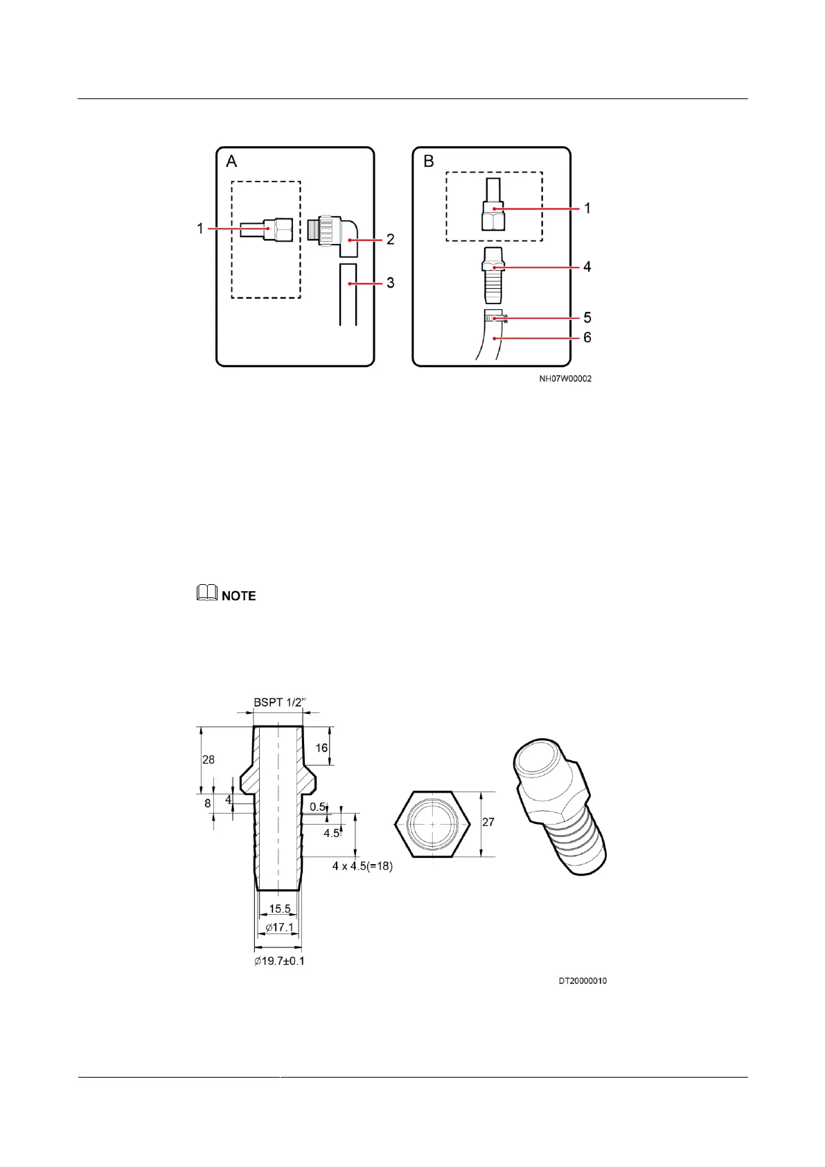 (2) Conversion adapter: BSPT 1/2 inch;