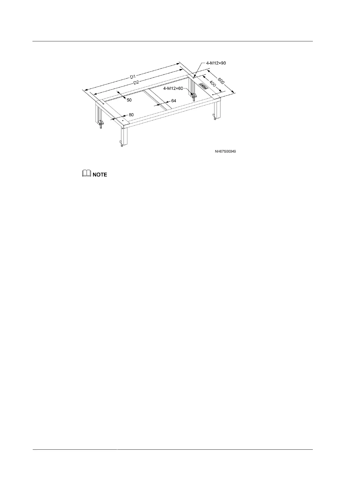 The M12 bolt used for securing the cabinet to its base must be at least 80 mm long.
