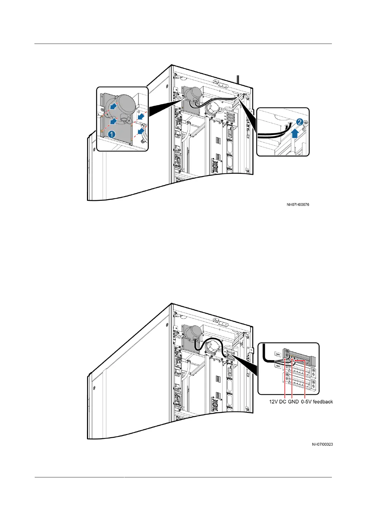 it to the cold aisle through the hole on the top of the cabinet. Connect another pressure inlet