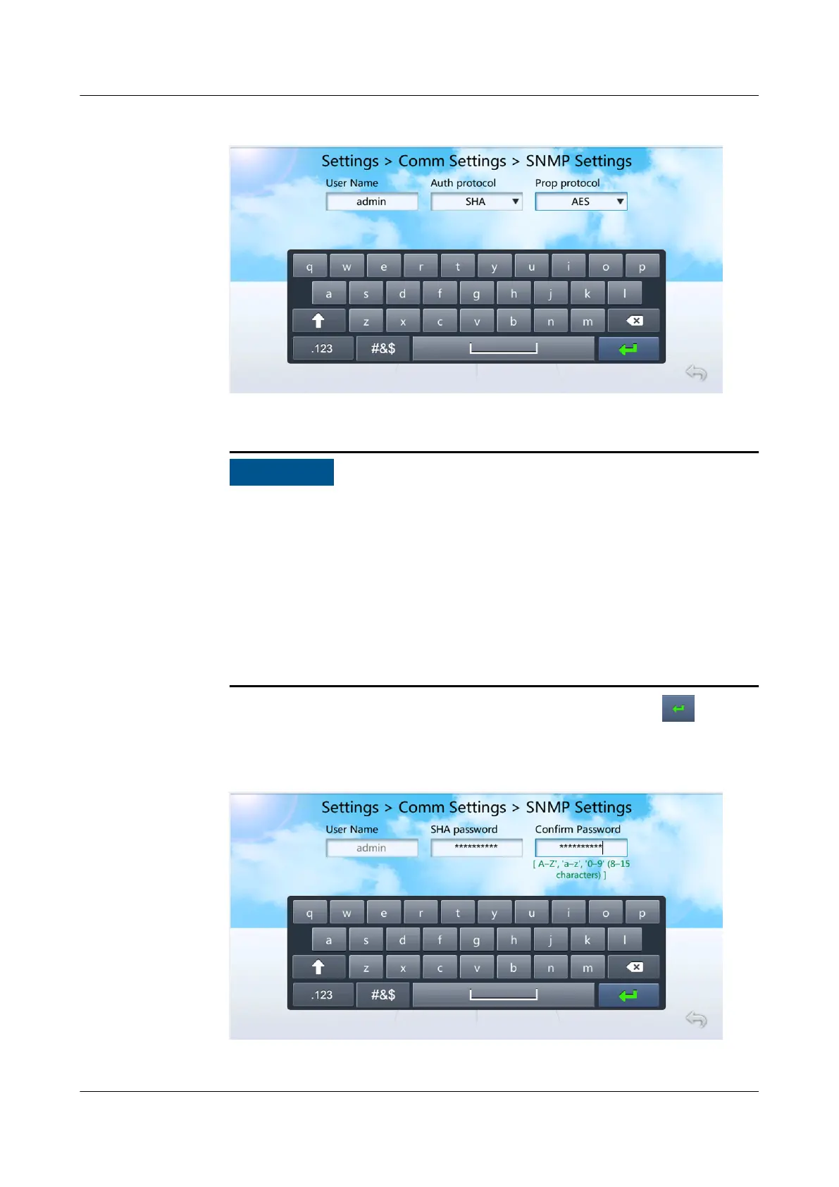 3. Set SHA Password and Conrm Password as planned, and tap , as