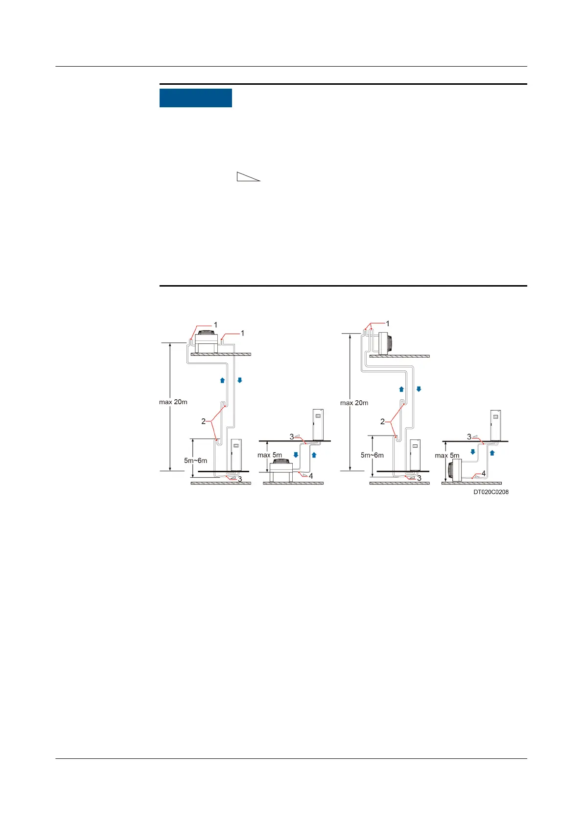 (2) Oil traps (3) Tilted gas pipe (4) Tilted liquid pipe