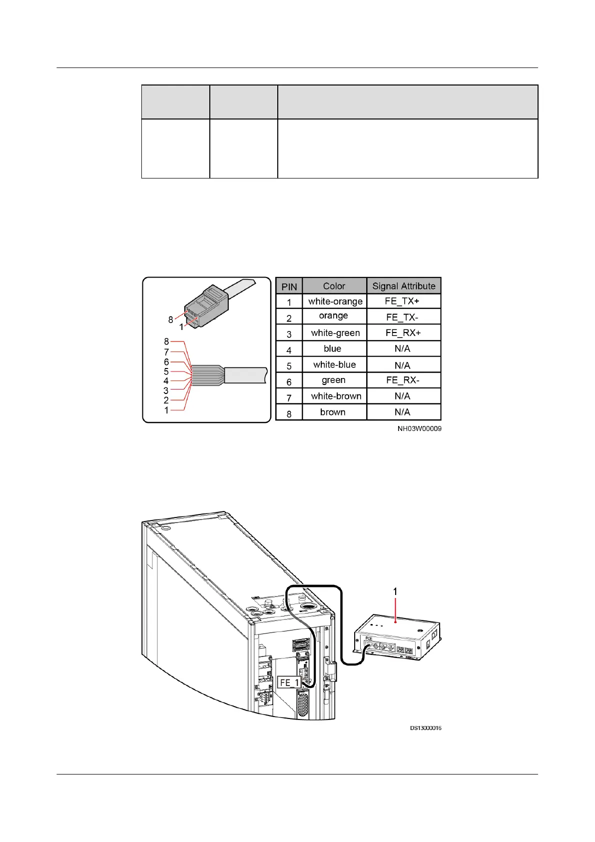 Figure 3-56 Pin sequence of the FE network cable