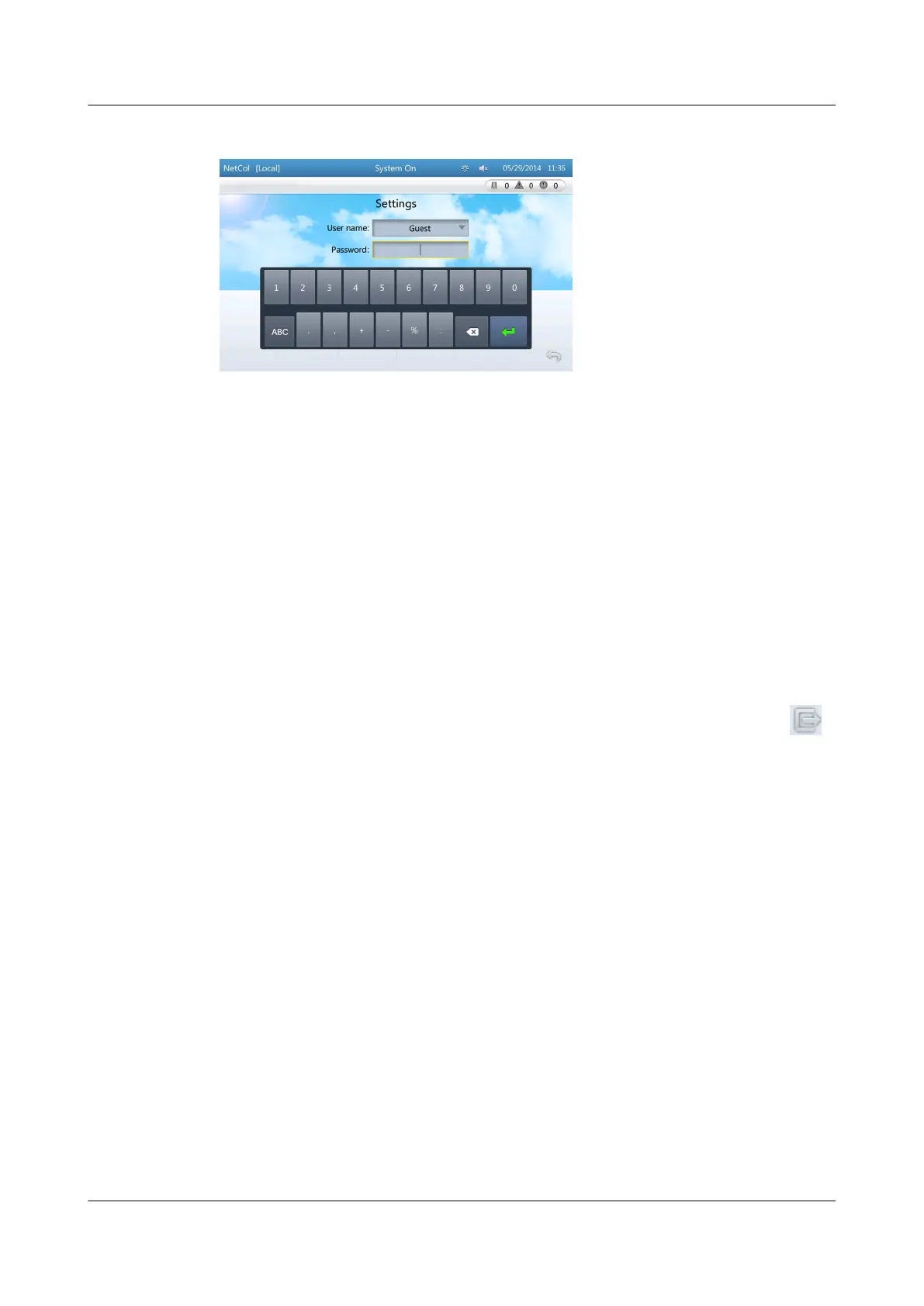 Figure 4-6 Screen for logging in to the settings screen