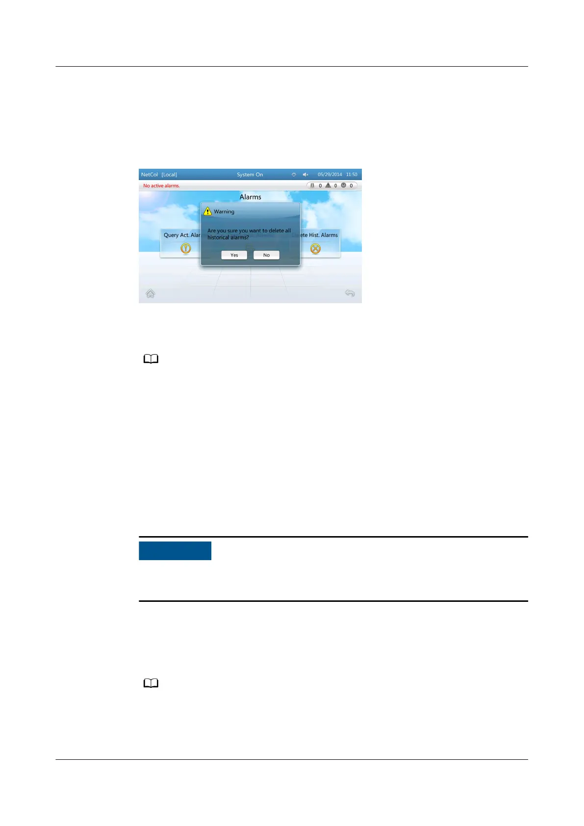 Step 1 On the home screen, choose Alarms > Delete Hist. Alarms to enter the Delete