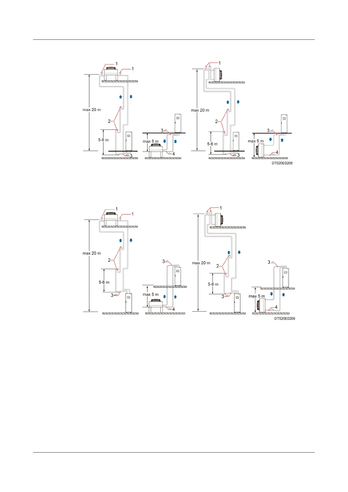 (2) Oil traps (3) Tilted gas pipe (4) Tilted liquid pipe