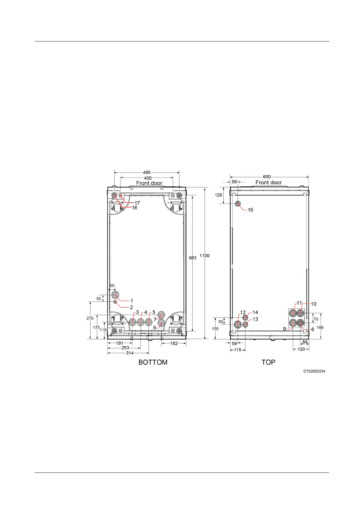 Figure 3-16 and Figure 3-17 show the ports on the bottom and top panels of the