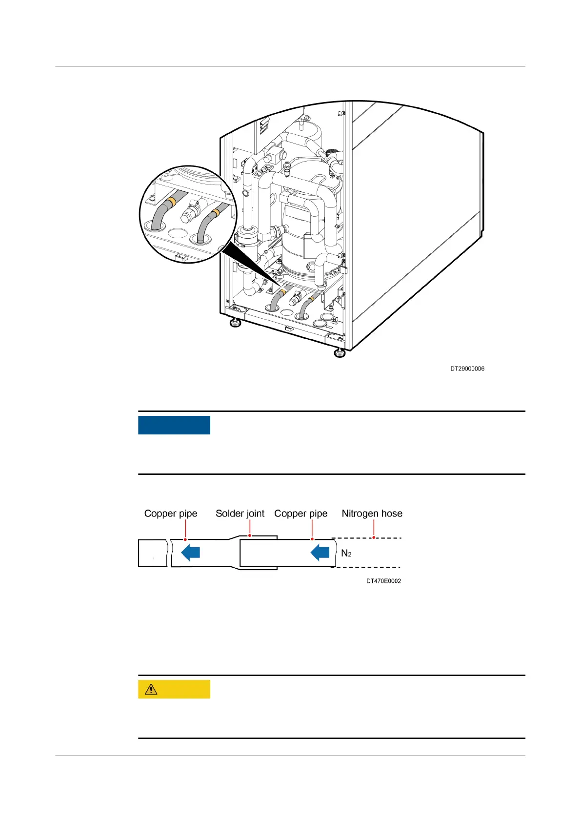 Charge nitrogen with a small pressure to protect pipes from oxidation while you