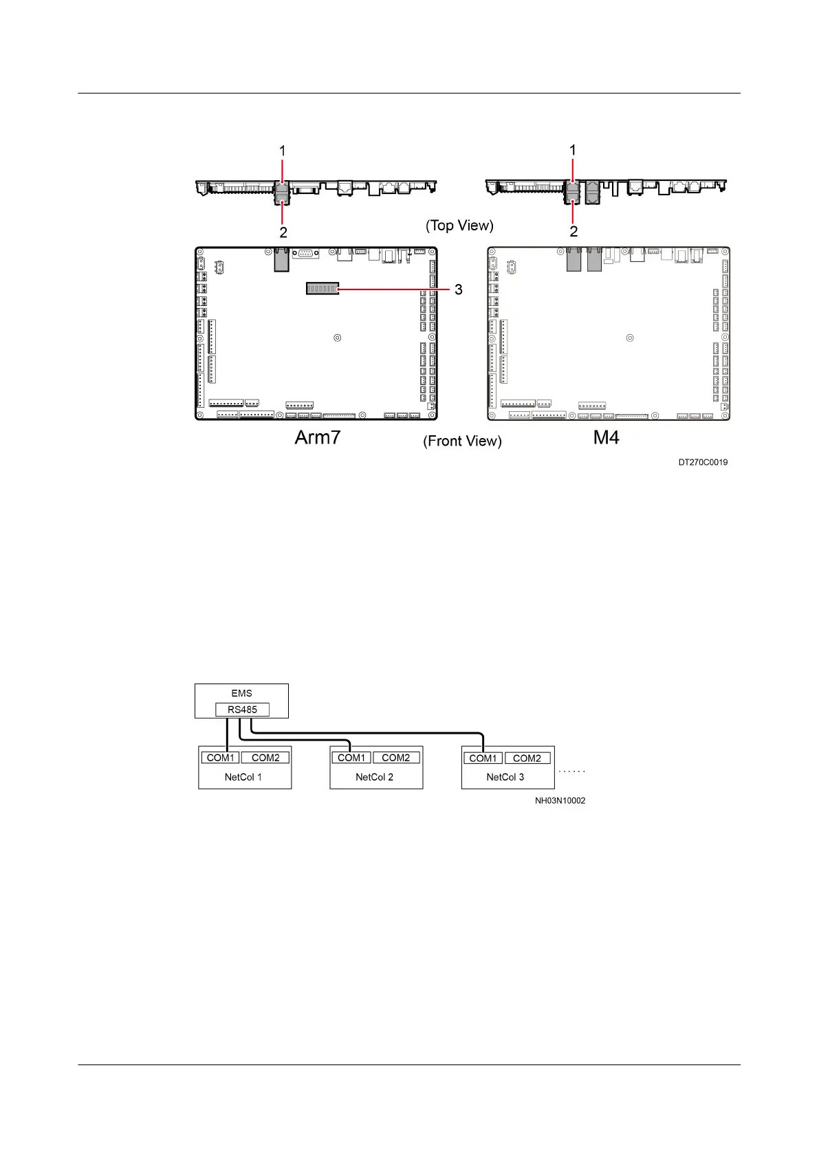 Connect the RS485 cable from the EMS to the teamwork communication port 1 or