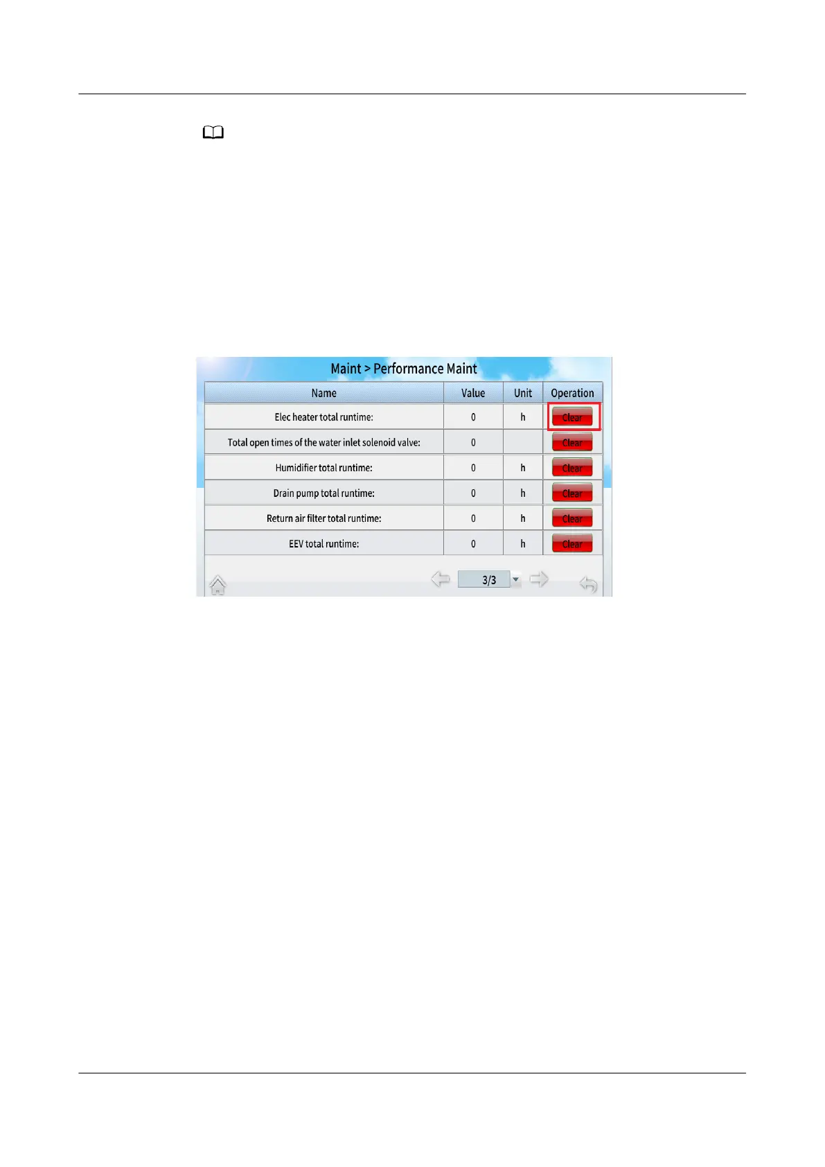 access the performance maintenance screen, and clear the runtime of the electric